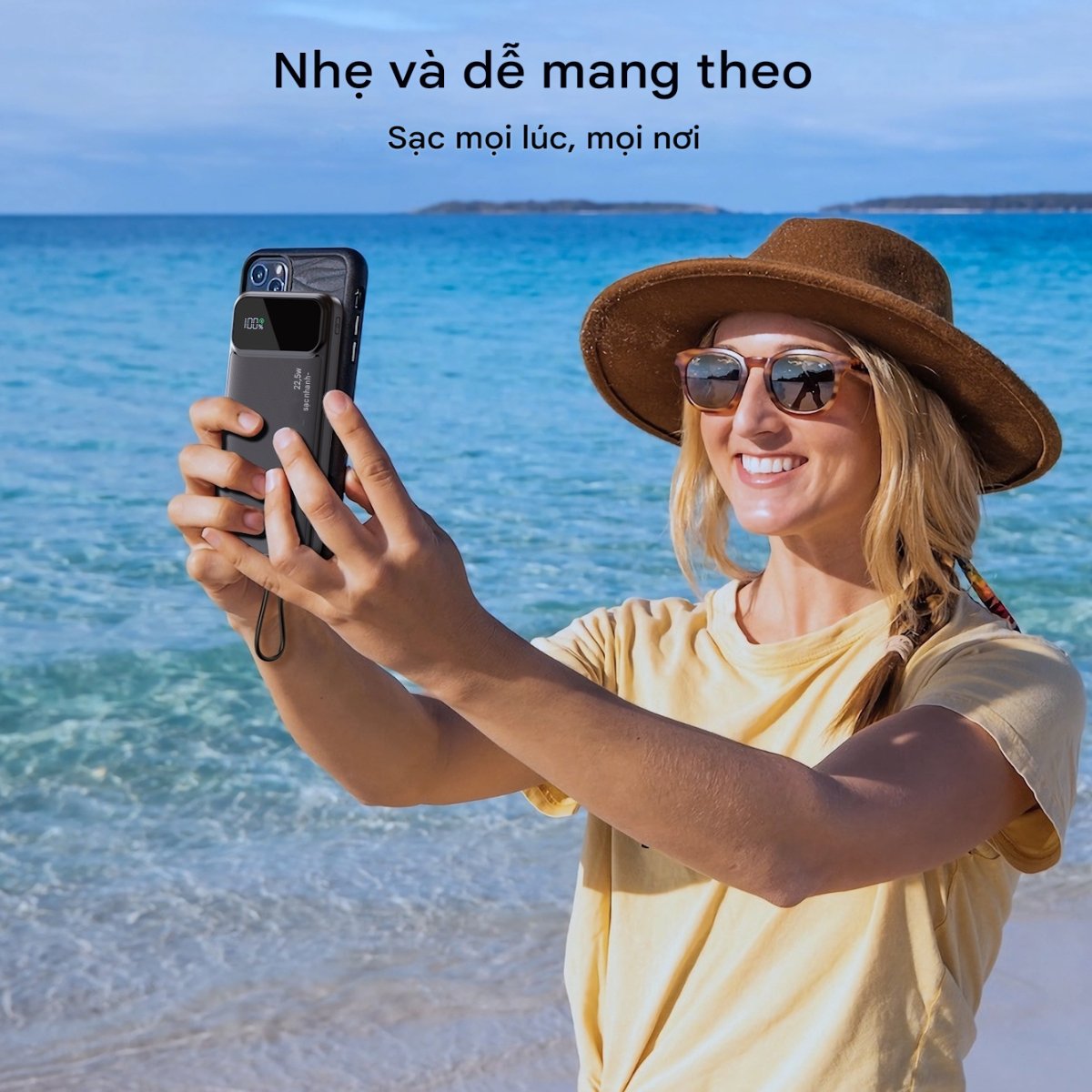 Sản phẩm còn tích hợp bộ đổi nguồn phổ biến, lý tưởng cho những người thường xuyên đi du lịch hoặc công tác quốc tế Được trang bị cáp C to L tích hợp phù