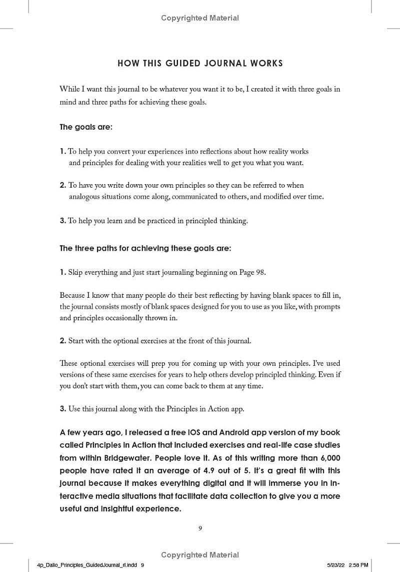 From Ray Dalio, the legendary investor and #1 New York Times bestselling author of Principles—whose books have sold more than five million copies worldwide—comes a guided reflection journal that empowers readers everywhere to develop their own principles for success in work and life.