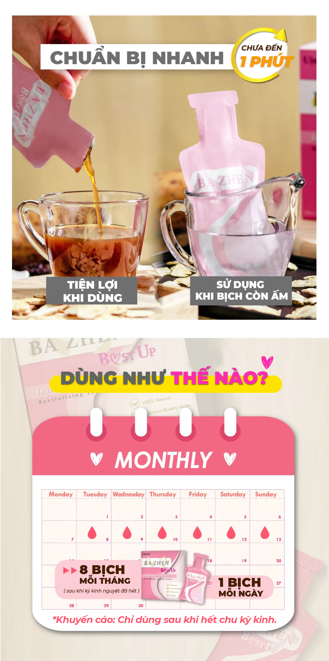 ✨[QUÀ 20.10] Nước Uống Thảo Mộc Giảm Đau Bụng Kinh Hiệu Quả, Tăng Kích Cỡ Vòng 1, Thon Gọn Sắc Vóc Ba Zhen Ujuwon Bust Up (Hộp 8 Gói)