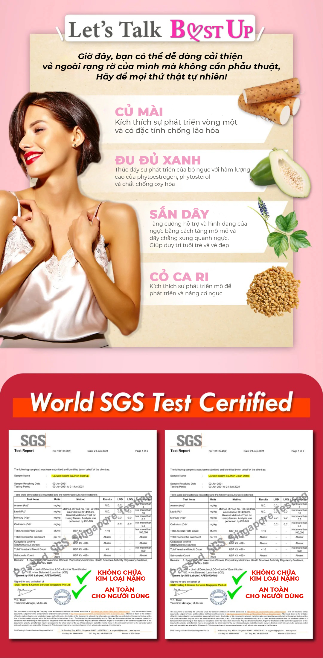 - Công thức độc quyền: Không nóng, không nổi mụn. Với dòng Bust Up ngoài ra còn có: