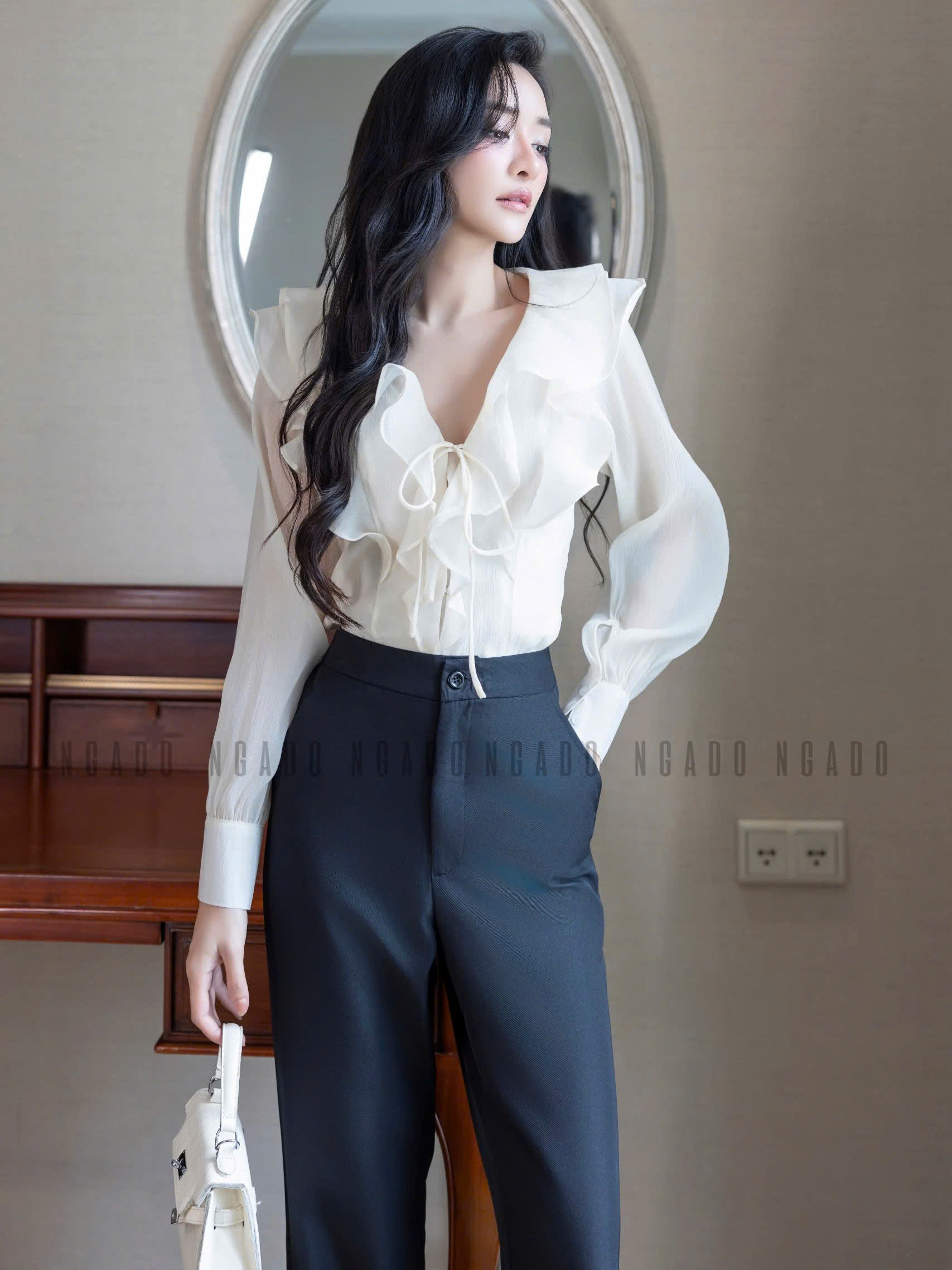 ✨Quần đen phối trắng NGADO, Quần tây nữ, Quần công sở, Quần ống đứng, ống rộng