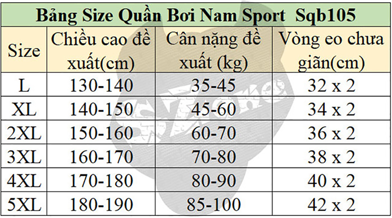 Quần Bơi Lửng Nam Phong Cách Chuyên Nghiệp Thời Trang Thể Thao SQB106 Bảng size L: 150 - 160 cm / Dưới 40 kg XL: 160 - 170 cm / 45 - 60 kg 2XL: