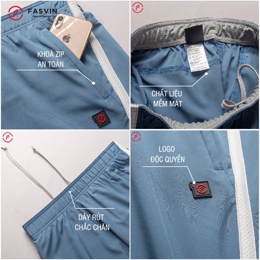 => Quần đùi nam ngắn chạy bộ FASVIN vải Dù Gió nhẹ mát có khóa túi tiện dụng thể thao hay mặc nhà được sản xuất trong nhà máy của FASVIN tại Việt Nam. Với