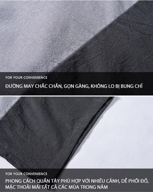 THÔNG TIN SẢN PHẨM: - Thương hiệu: Đũi Việt - Xuất xứ: Việt Nam - Màu sắc: Trắng, Đen, Xanh navy, Xanh biển, muối tiêu, Xám đậm, - Size: M, L, XL, 2XL, 3XL Size M : Cân nặng <60 Kg Size L : Cân nặng 60 - 68 Kg Size XL : Cân nặng 69 - 74 Kg Size XXL : Cân nặng 75 - 80 Kg ✪ Size có thể thay đổi tùy vào chiều cao mỗi người. Các bạn tham khảo bảng size gợi ý nhé ✪ Các bạn khó chọn SIZE hoặc phân vân đừng ngại ngần cứ chat với Shop để tư vấn chọn size chuẩn và hướng dẫn các vấn đề sau khi mua hàng nhé ------------------------------ ️ Loại : Quần Đũi Linen ️ Kiểu Dáng : Đi Chơi, Hẹn Hò, Công Sở, Ở Nhà. ️ Chất Liệu : Vải linen bột Cao Cấp ️ Thích Hợp : 4 Mùa - Chất liệu: vải linen thô tự nhiên. Vải có đặc tính mềm mát, thoáng mồ hôi lại không bám dính, tạo cảm giác thoải mái cho người mặc trong thời tiết dù nóng bức. - Form hiện đại- Dáng basic– Dễ phối đồ từ đi chơi– dạo phố- đi du lịch. MỘT SỐ LƯU Ý: - Do màn hình và điều kiện ánh sáng khác nhau, màu sắc vải/ sản phẩm có thể sẽ chênh lệch thực tế một phần nhỏ nhưng vẫn đảm bảo chất lượng. CHÍNH SÁCH MUA HÀNG - Hồ trợ đổi hàng nếu sản phẩm khách đặt không vừa hoặc ko thích mẫu mã, màu sắc đã chọn. (Hỗ trợ đổi trong vòng 7 ngày). - Kiểm tra hàng trước khi nhận và thanh toán khi hài lòng về sản phẩm. SỰ HÀI LÒNG CỦA KHÁCH HÀNG LÀ ĐỘNG LỰC ĐỂ TEAM ĐŨI STYLE CỐ GẮNG HƠN MỖI NGÀY. Sản phẩm này là tài sản cá nhân được bán bởi Nhà Bán