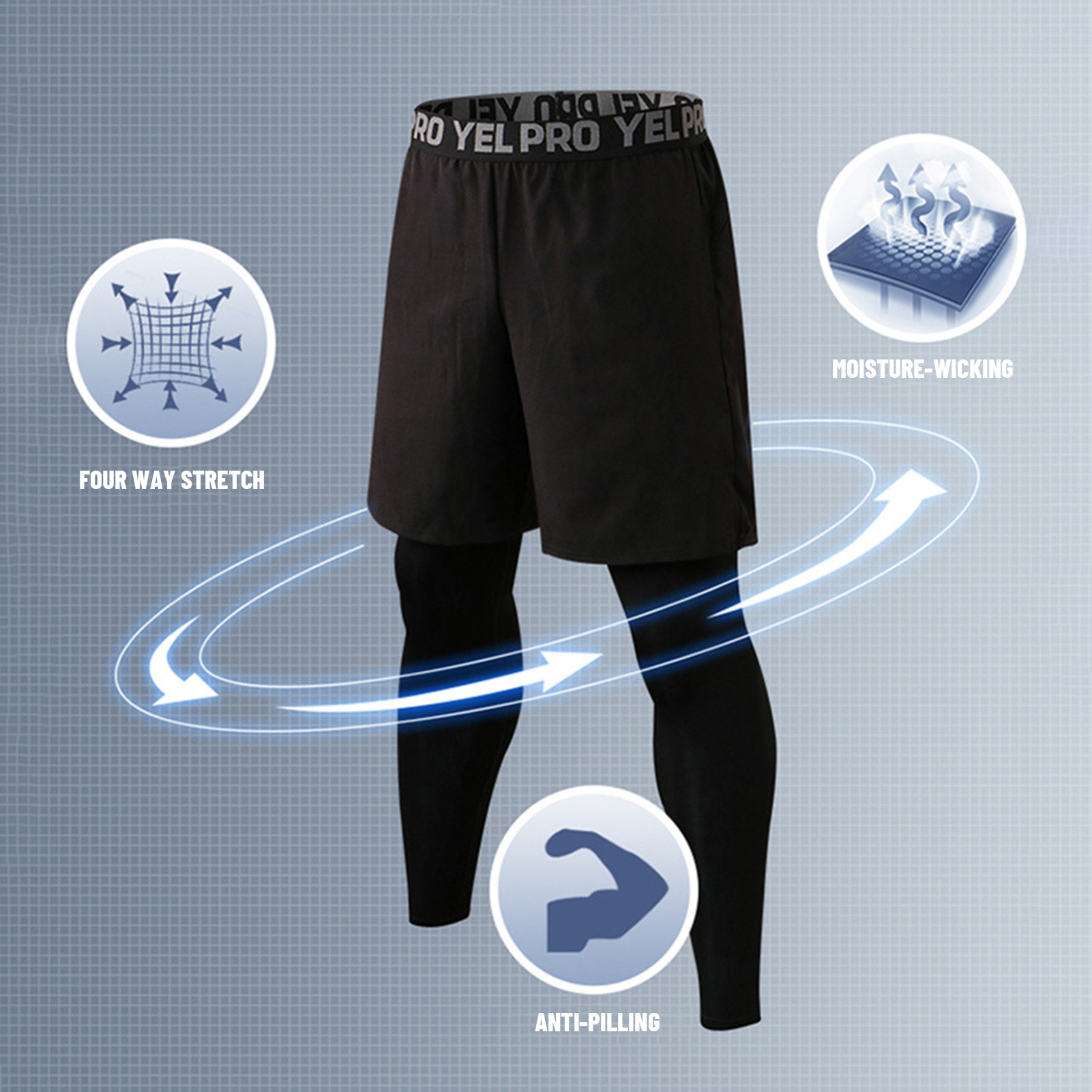 ✨Quần đùi nam Yel Pro Men 2-in 1 đàn hồi có túi eo co giãn kiểu dáng thể thao