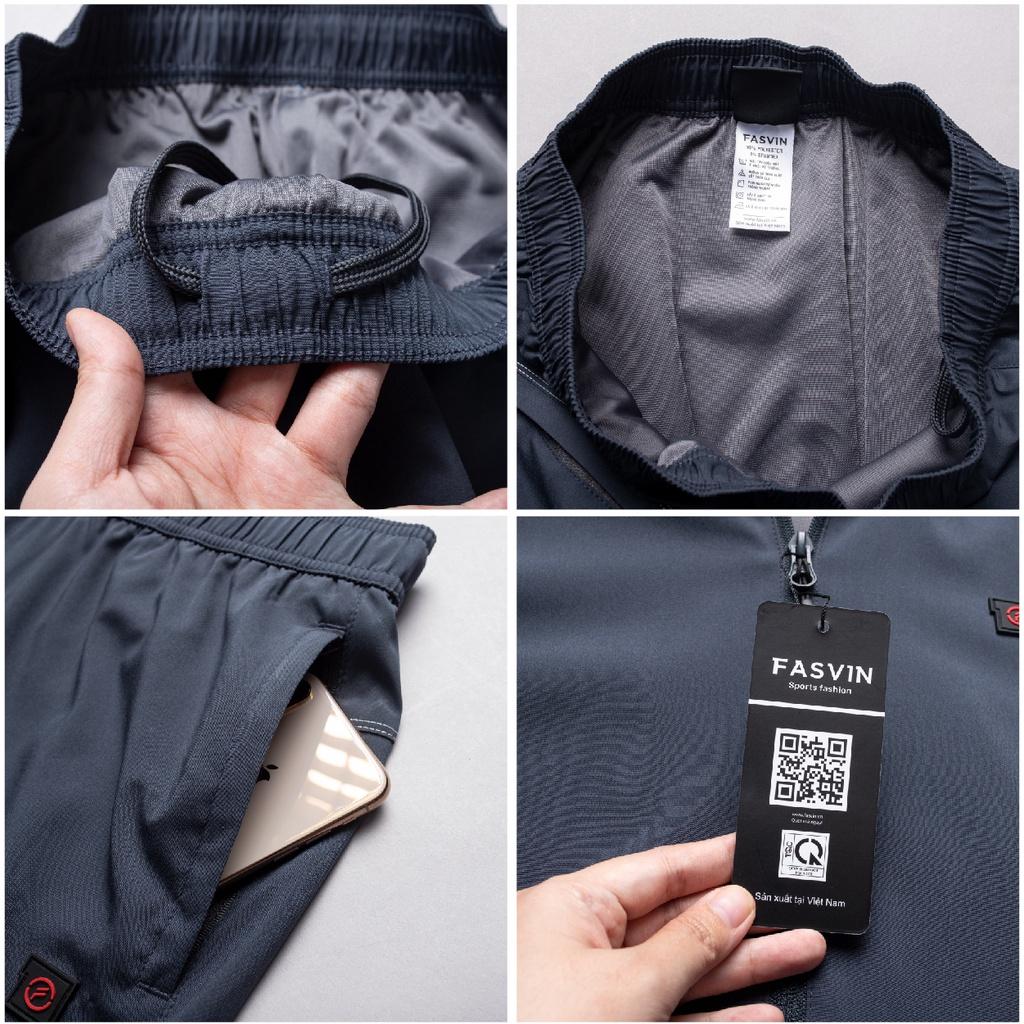 => Quần gió nam 02 lớp FASVIN Dáng Suông được chế tạo tại nhà máy của FASVIN với quy trình thu hóa nghiệm ngặt. Các sản phẩm đều được những người thợ lâu năm trong
