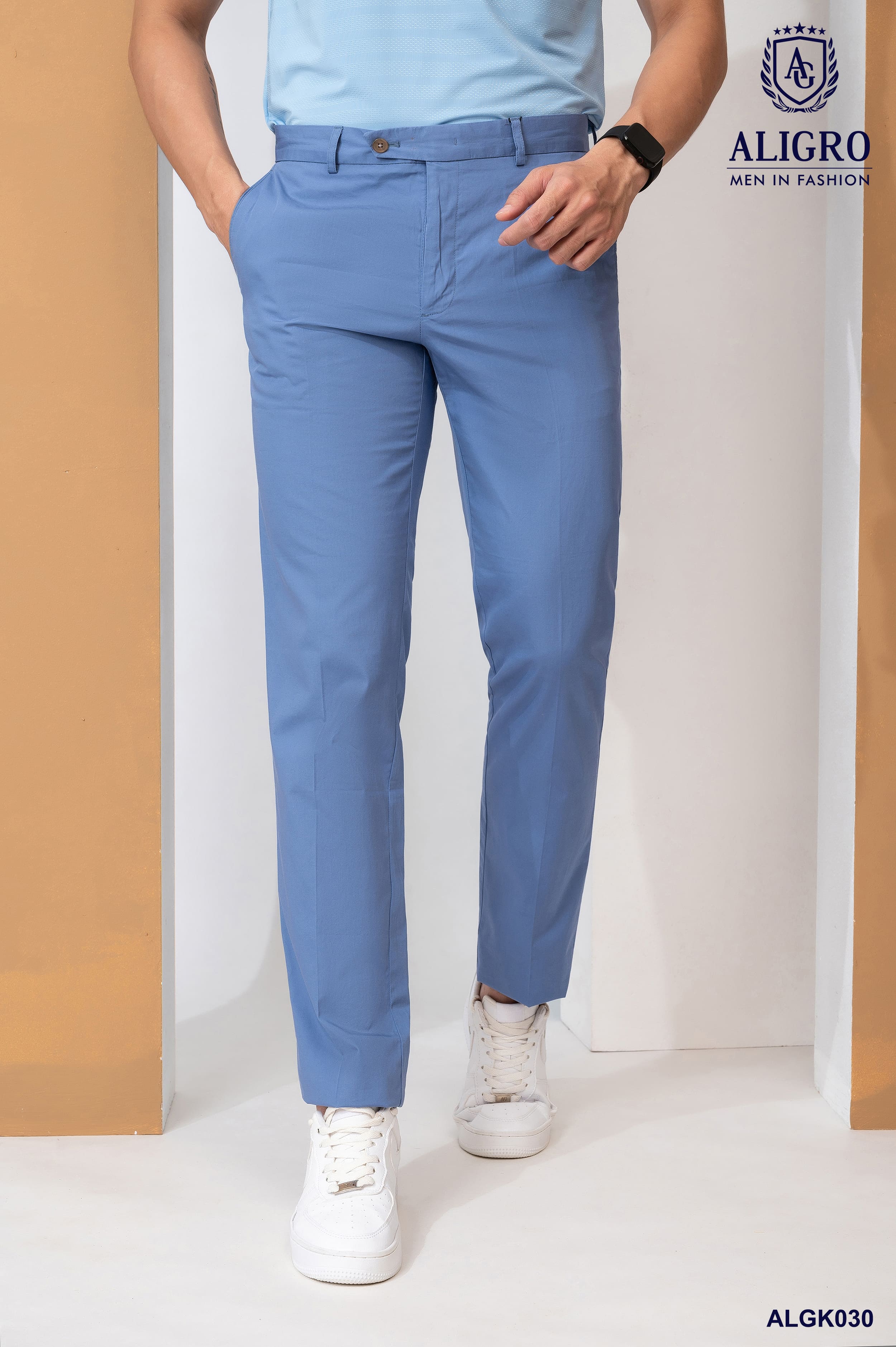 Quần Kaki Nam ALIGRO Màu Xanh Da Trời Chất Liệu Kaki Mềm, Mịn, Không Bai Xù, Co Giãn Tốt, Chuẩn Form, ALGK020  Quần Slim-fit TR018W