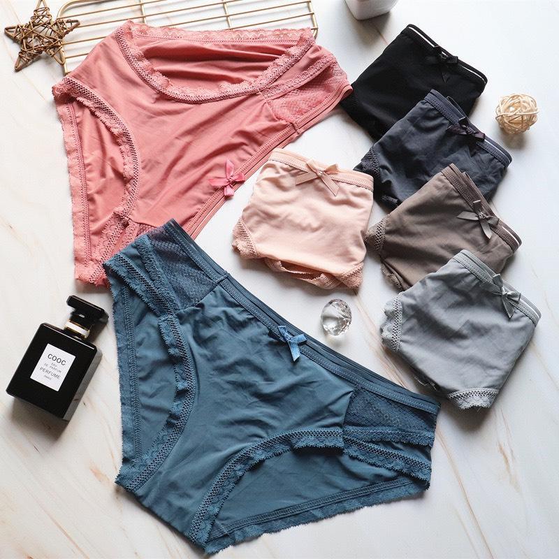 Combo 5 Quần Lót Nữ Phi Lụa Phối Ren Xinh Xắn 0501 – Mềm Mịn, Thoáng Mát, Không Viền  Điểm nổi bật - Chất liệu phi lụa cao cấp: Mặt trước bóng mượt như lụa,