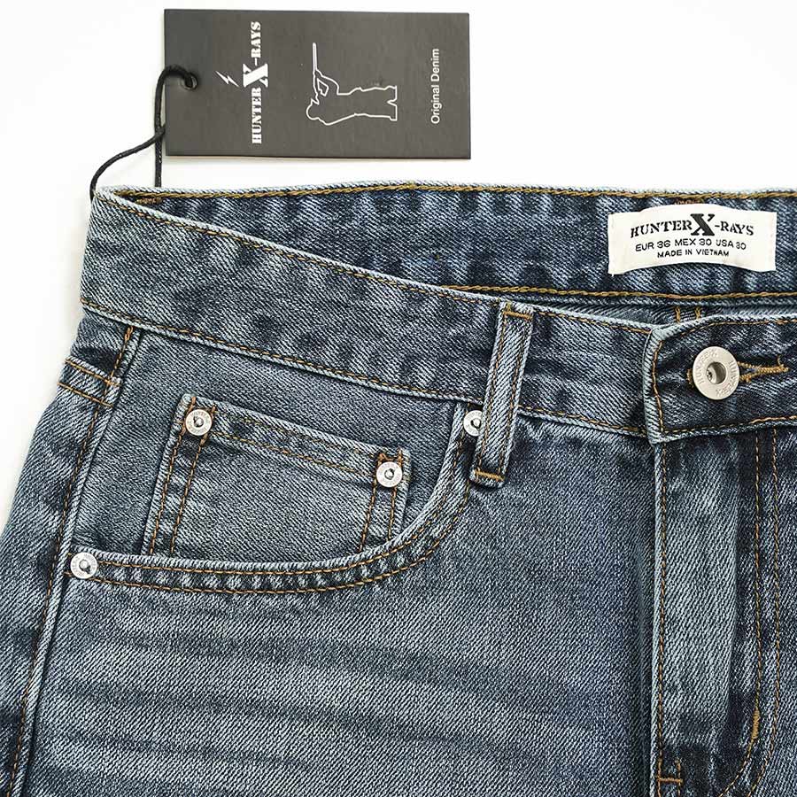 Quần Short Jeans Nam Cao Cấp HUNTER X-RAYS Form Slimfit Thun Màu Xanh S68 Đặc điểm nổi bật: Nút được đúc nguyên khối bằng đồng và nổi bật thương hiệu HUNTER X-RAYS đảm bảo độ