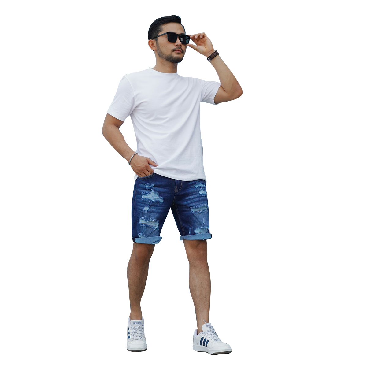 ✨Quần Short Jeans Nam Rách Cao Cấp HUNTER X-RAYS Form Slim Thun Màu Xanh Đậm S78