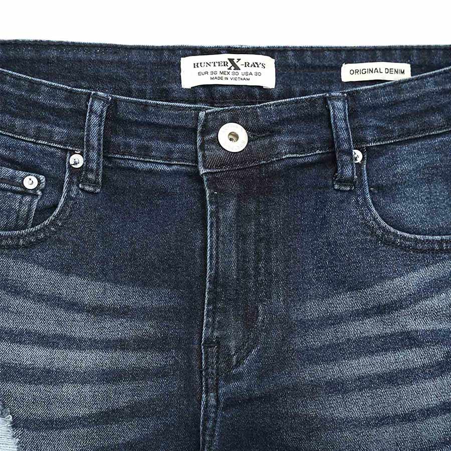 Quần Short Jeans Nam Rách Cao Cấp HUNTER X-RAYS Form Slim Thun Màu Xanh Đậm S78 Đặc điểm nổi bật: Nút được đúc nguyên khối bằng đồng và nổi bật thương hiệu HUNTER X-RAYS đảm