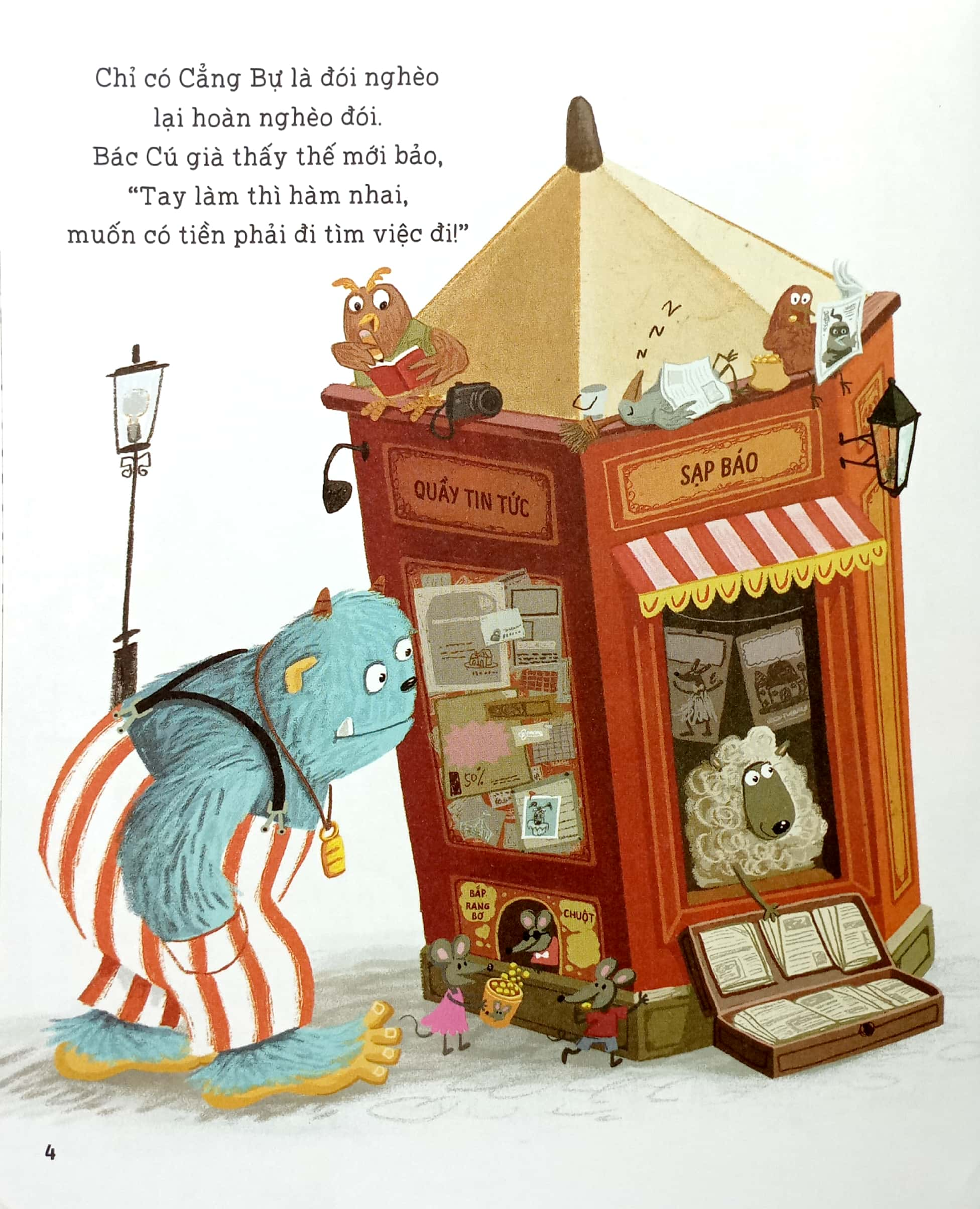 Sau khi trải qua những cuộc phiêu lưu thú vị trên đảo Giàu có, Cẳng bự lại gặp phải một thử thách mới: tìm việc làm. Cuốn sách này đưa độc giả nhỏ tuổi cùng Cẳng bự khám phá thế giới lao động, từ việc tìm kiếm việc làm phù hợp, trải nghiệm quá trình làm việc cho đến việc nhận lương và quản lý thu nhập.