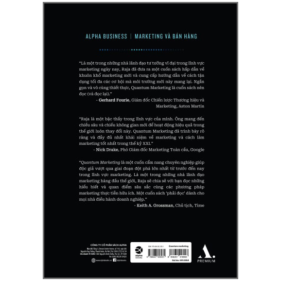 'Tiếp thị lượng tử mô tả một cách xuất sắc những thách thức to lớn mà các CMO trong tương lai phải đối mặt và cách suy nghĩ lại về cơ bản các nguyên tắc và khuôn khổ tiếp thị. Cuốn sách cần phải đọc cho các nhà tiếp thị và lãnh đạo doanh nghiệp, những người muốn thúc đẩy tăng trưởng và phát triển mạnh mẽ trong tương lai.' - Ravi Dhar, Giáo sư Marketing, Trường Quản lý Yale.