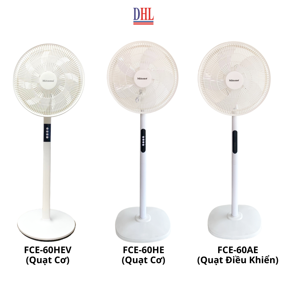 Hiện tại công ty phân phối 2 Model quạt đứng Mitomo như sau: - Model FCE - 60AE ( Quạt điện tử: phím cảm úng, có điều khiễn, có hẹn giờ ) - Model