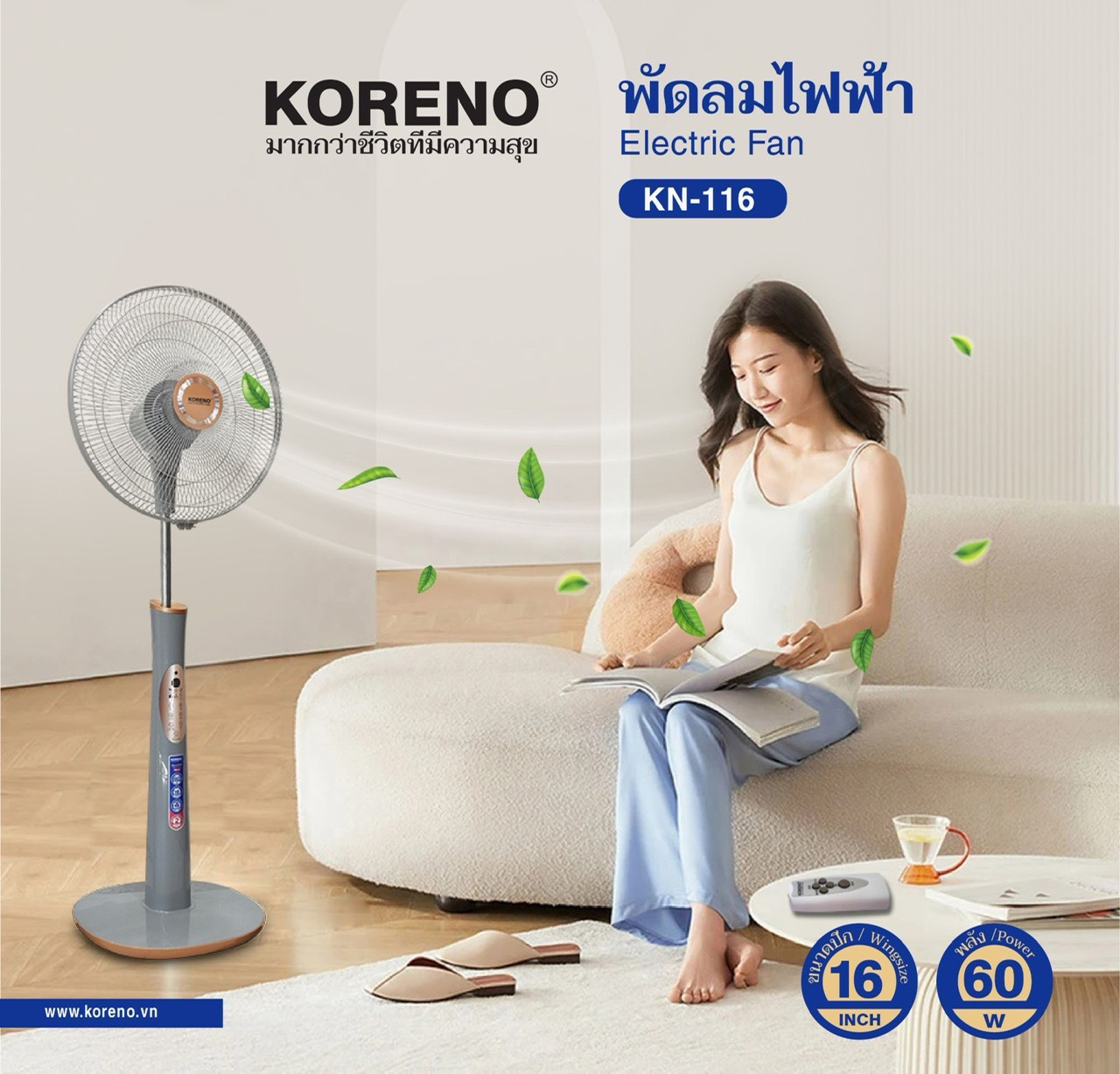 - Chân đế tròn chống đổ cực an toàn cho người sử dụng Thông số kỹ thuật chi tiết Quạt đứng KORENO KN Đặc tính sản phẩm -Loại quạt: Quạt đứng -Công suất: 60W -Đường kính cánh quạt: 40 cm -Số cánh quạt: 3 cánh -Tốc độ gió: 3 mức gió -Chế độ gió: +Gió thường +Gió tự nhiên +Gió ngủ +Gió yên tĩnh -Bảng điều khiển: Nút nhấn, Có điều khiển -Loại motor: dây đồng -Tiện ích: Hẹn giờ tắt -Kích thước: Ngang 44.5 cm - Cao 133 cm - Sâu 40 cm -Trọng lượng: 7.2 Kg -Thương hiệu của: Thái lan -Sản xuất tại: Trung Quốc -Hãng: Koreno Năm sản xuất: 2024 SHOP CAM KẾT
