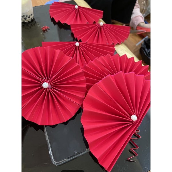 ✨Quạt làm oản - quạt giấy - nhiều kích thước - Cây giả, hoa lụa trang trí nhà cửa