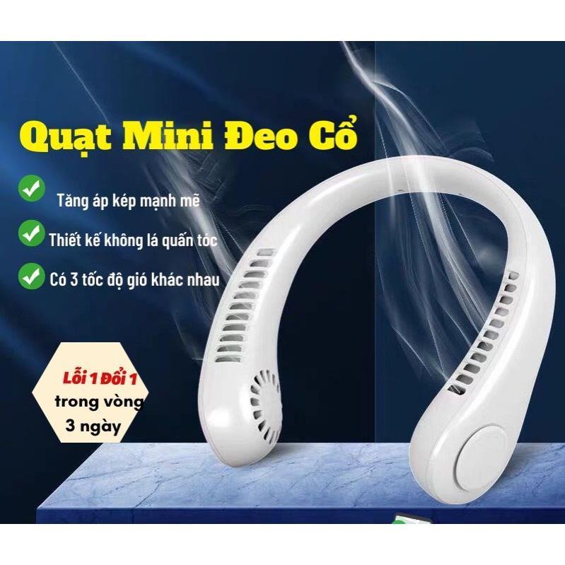 Quạt Đeo Cổ Mini Không Cánh Tích Điện Thông Minh, 3 Cấp Độ Gió Mạnh, Dung Lượng Pin Lớn