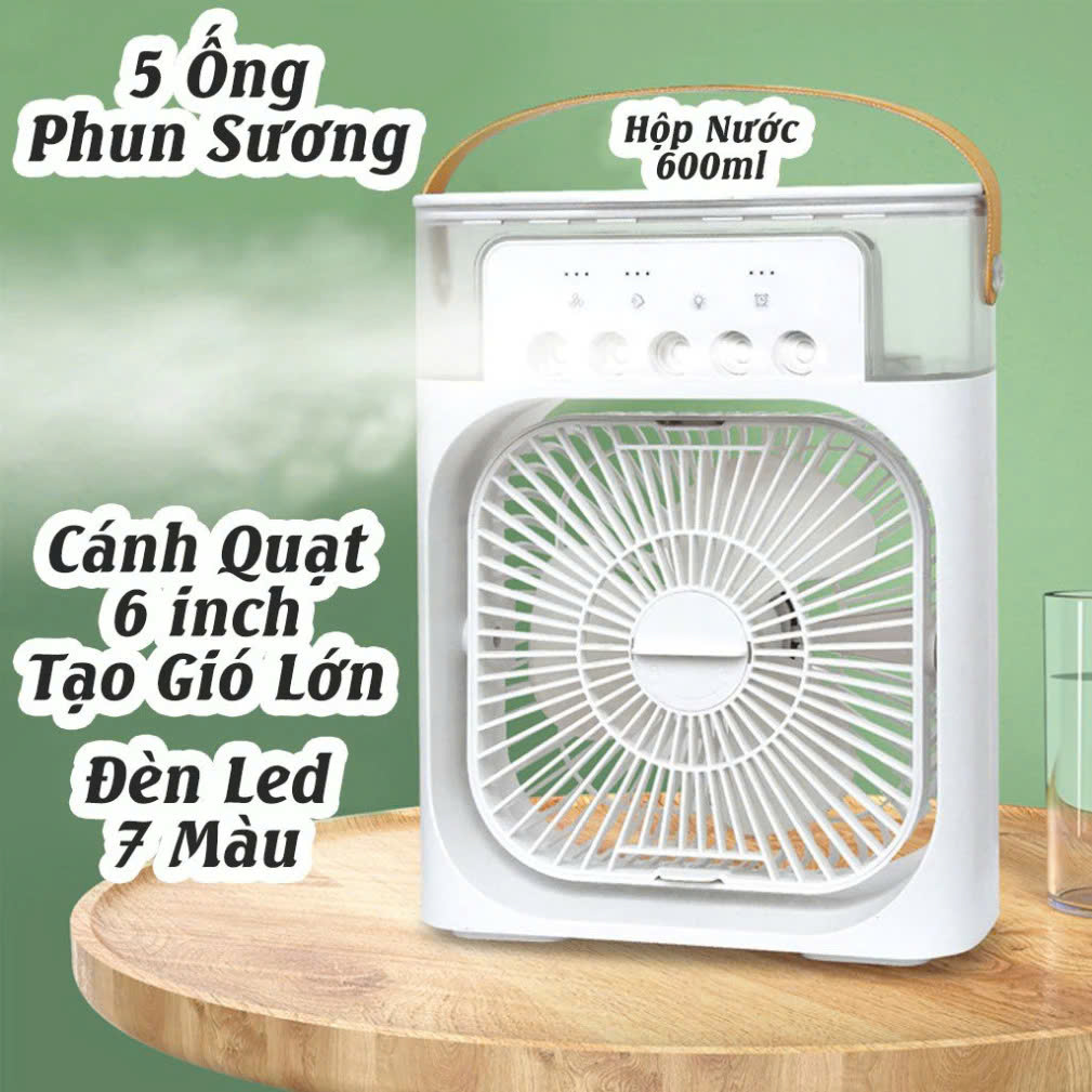• Đa năng: Vừa là quạt gió, vừa là máy phun sương, vừa là đèn LED trang trí.