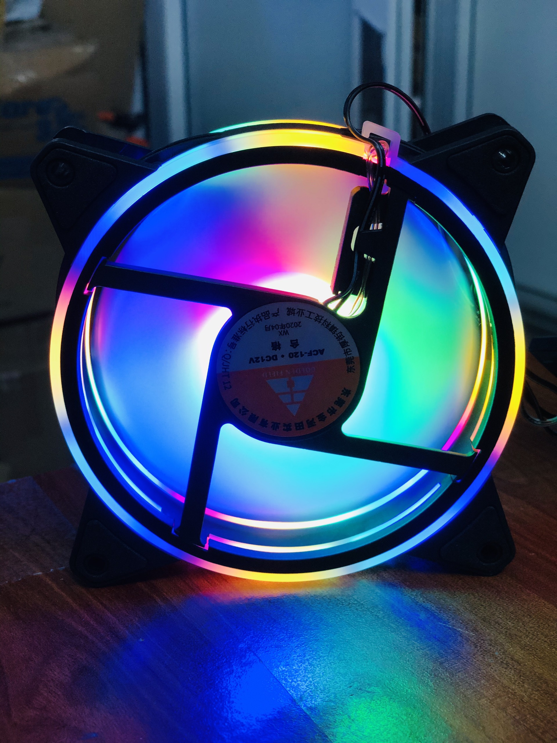 Quạt tản nhiệt Led RGB. Sử dụng kích cỡ quạt 120mm và điều khiển tối ưu hóa, bạn có thể thay đổi tốc độ quạt , hiệu ứng đèn theo màu sắc yêu thích. Lực