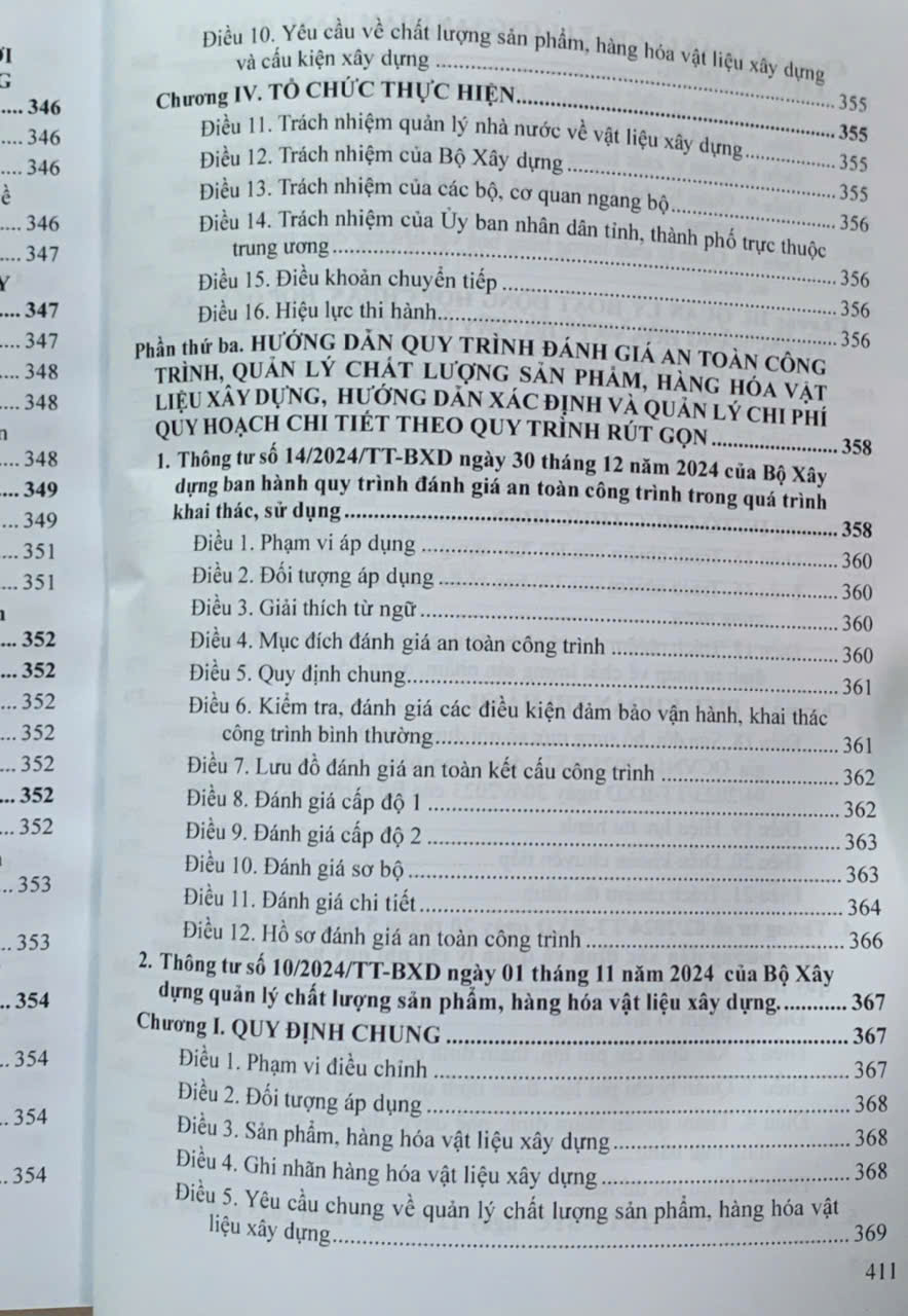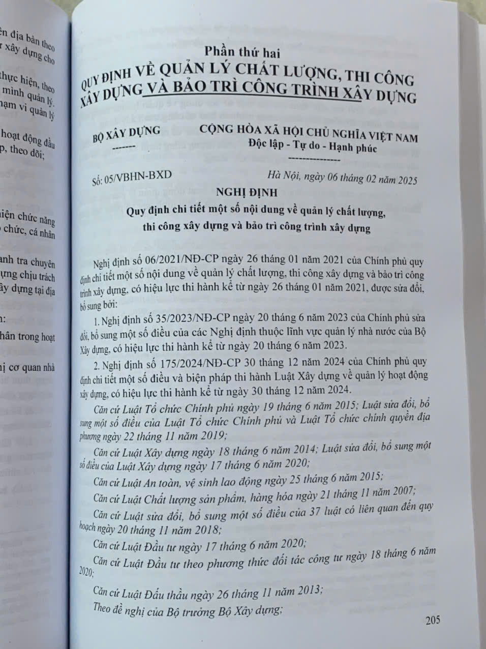 Quy định chi tiết thi hành Luật Xây Dựng về quản lý chất lượng, thi công xây dựng và bảo trì công trình xây dựng Tác giả: Tài Thành (Hệ thống) Nhà xuất bản: Hồng Đức Công ty phát hành: Công ty TNHH Sách Luật VN Ngày xuất bản: 3.2025 Số trang: 406 trang Khổ sách: 19×27 cm Giá bìa 395.000 Thời gian qua Quốc hội, Chính phủ và Bộ ngành đã ban hành nhiều văn bản Luật liên quan đến Luật Xây dựng và nhiều Nghị định mới như: Nghị định số 175/2024/NĐ-CP ngày 30 tháng 12 năm 2024 quy định chi tiết một số điều và biện pháp thi hành Luật Xây dựng về quản lý hoạt động xây dựng. Thông tư số 10/2024/TT-BXD ngày 01 tháng 11 năm 2024 của Bộ Xây dựng về quản lý chất lượng sản phẩm, hàng hóa vật liệu xây dựng. Thông tư số 02/2024/TT-BXD ngày 20 tháng 5 năm 2024 của Bộ Xây dựng hướng dẫn xác định và quản lý chi phí quy hoạch chi tiết theo quy trình rút gọn… Nhằm có tài liệu tuyên truyền những quy định pháp luật mới trên đến các cơn quan, đơn vị, doanh nghiệp và cá nhân liên quan có tài liệu tham khảo áp dụng trong công việc Nhà xuất bản Hồng Đức xuất bản cuốn sách: QUY ĐỊNH CHI TIẾT THI HÀNH LUẬT XÂY DỰNG VỀ QUẢN LÝ CHẤT LƯỢNG, THI CÔNG XÂY DỰNG VÀ BẢO TRÌ CÔNG TRÌNH XÂY DỰNG Nội dung cuốn sách gồm các phần sau: Phần thứ nhất. NHỮNG QUY ĐỊNH MỚI VỀ LUẬT XÂY DỰNG Phần thứ hai. QUY ĐỊNH VỀ QUẢN LÝ CHẤT LƯỢNG, THI CÔNG XÂY DỰNG VÀ BẢO TRÌ CÔNG TRÌNH XÂY DỰNG Phần thứ ba. HƯỚNG DẪN QUY TRÌNH ĐÁNH GIÁ AN TOÀN CÔNG TRÌNH, QUẢN LÝ CHẤT LƯỢNG SẢN PHẨM, HÀNG HÓA VẬT LIỆU XÂY DỰNG, HƯỚNG DẪN XÁC ĐỊNH VÀ QUẢN LÝ CHI PHÍ QUY HOẠCH CHI TIẾT THEO QUY TRÌNH RÚT GỌN Trong quá trình hệ thống không tránh khỏi những sơ sót nhất định, chúng tôi mong muốn nhận được những góp ý từ bạn đọc để cuốn sách được hoàn thiện trong những lần tái bản sau.