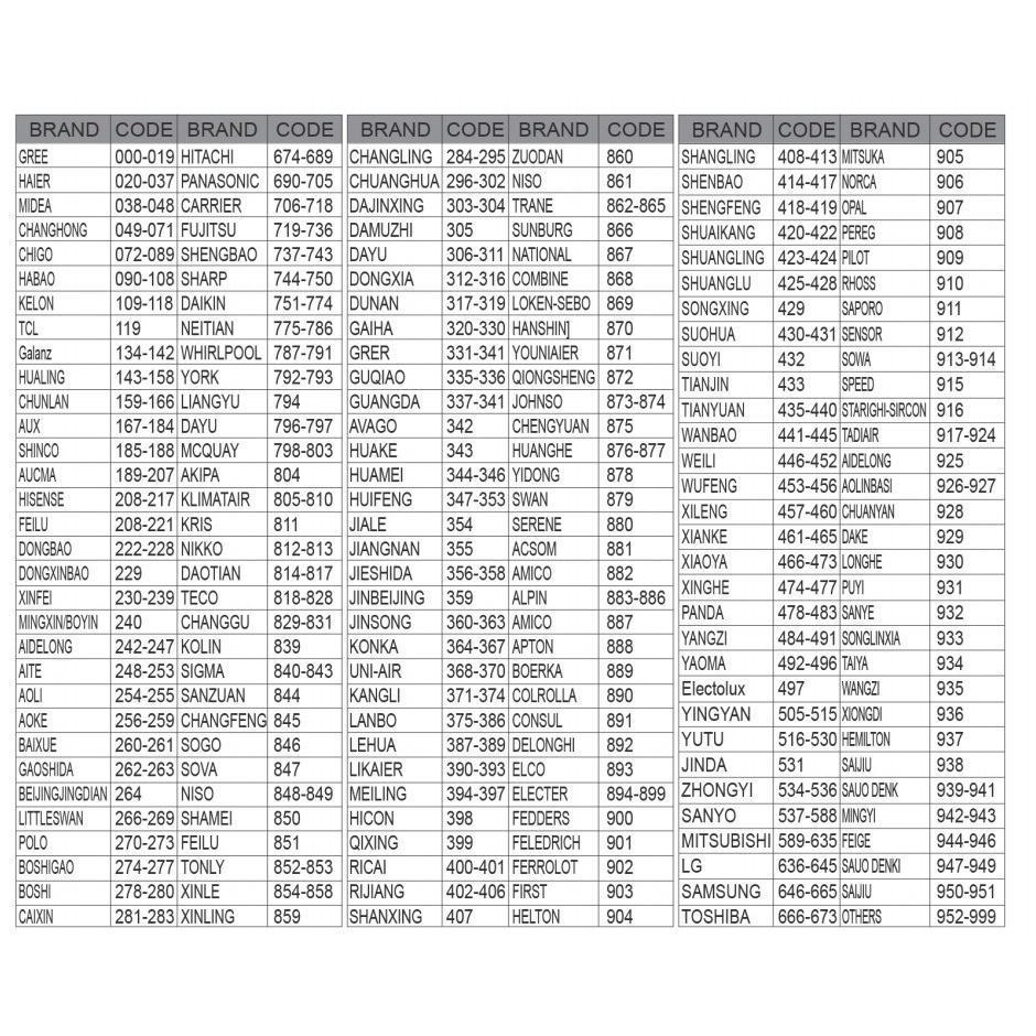 Điều khiển điều hòa đa năng dùng được cho tất cả các loại máy điều hòa như : Điều khiển Điều hòa cho Panasonic, Điều Khiển điều hòa cho Toshiba. Điều Khiển điều hòa cho Fujitsu…Bộ nhớ của nó chứa hàng nghìn mã của các loại điều hòa.