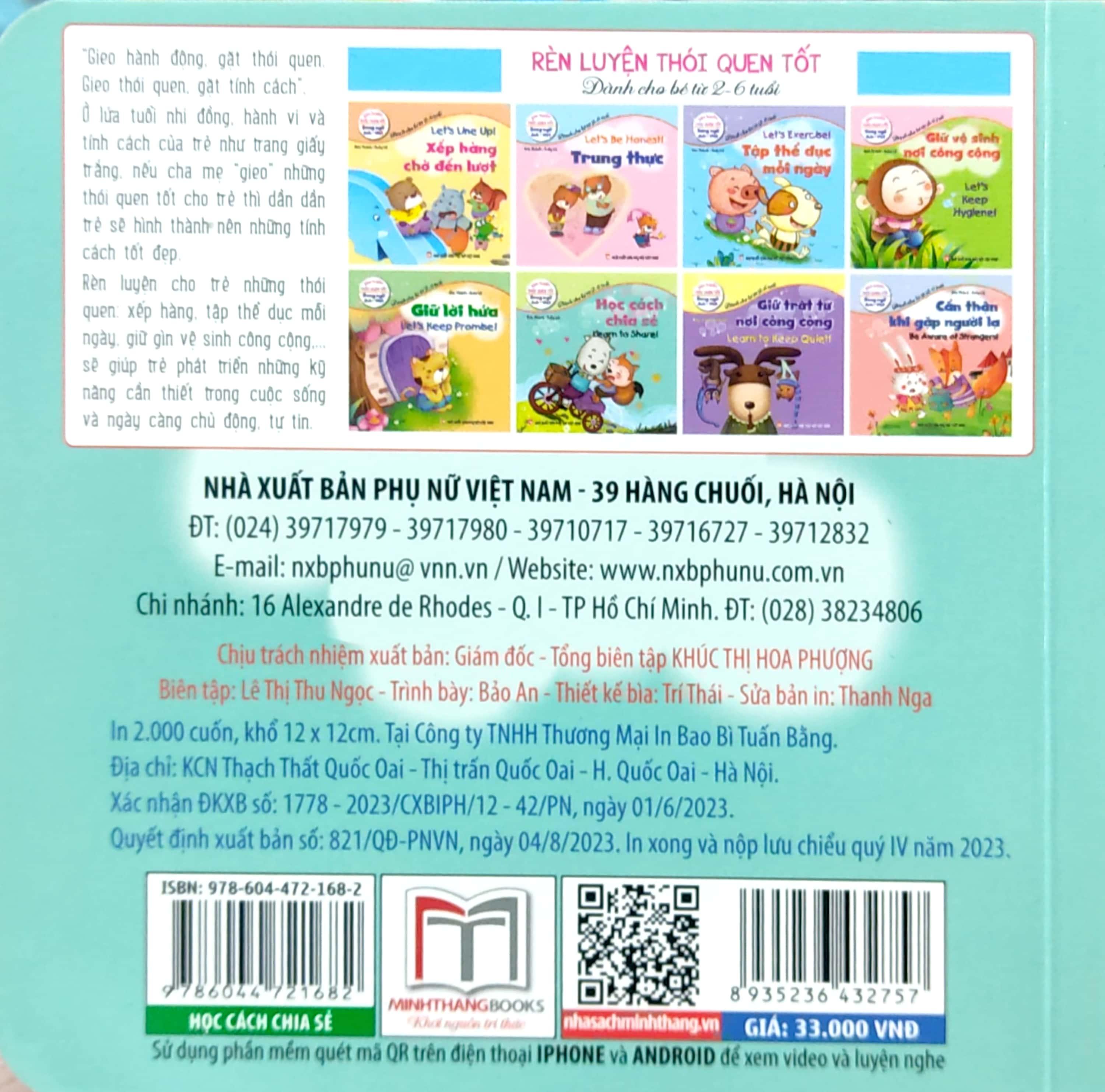✨Rèn Luyện Thói Quen Tốt - Song Ngữ Anh-Việt - Học Cách Chia Sẻ (Dành Cho Trẻ Từ 2-6 Tuổi) (Tái Bản 2023)