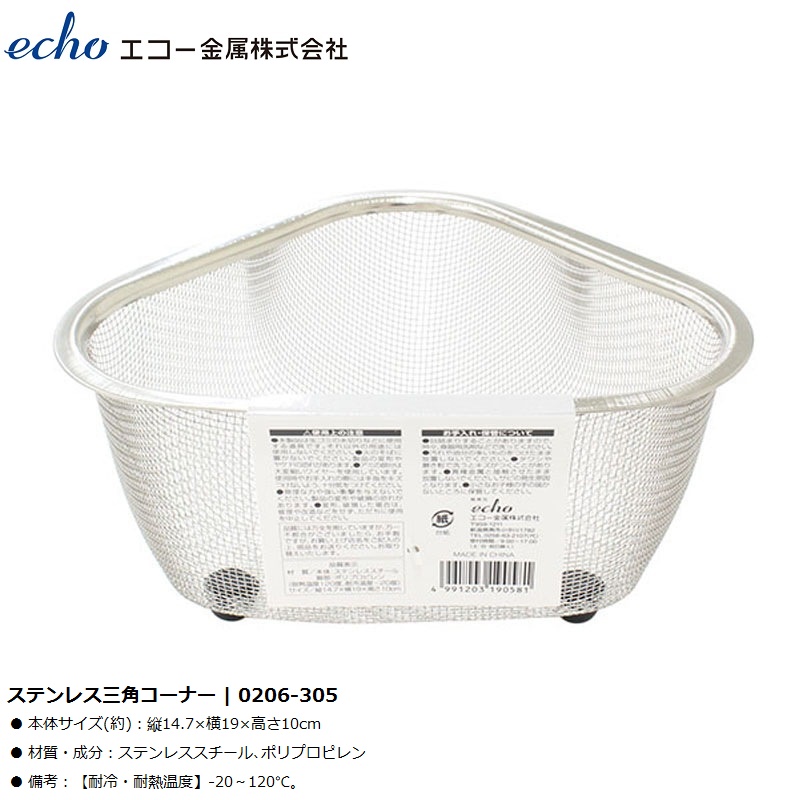 RỔ INOX GÓC TAM GIÁC CÓ CHÂN ĐẾ ECHO CORNERSINK - HÀNG NỘI ĐỊA NHẬT BẢN (Sản phẩm được nhập khẩu trực tiếp từ Nhật Bản) ■ Xuất xứ: Nhật Bản ■ NSX: Echo Kinzoku Co.,Ltd (Japan) ■