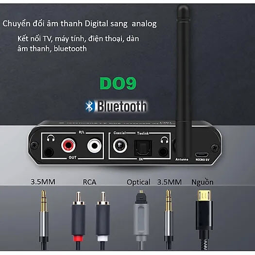 Bộ Chuyển đổi âm thanh kĩ thuật số optical sang Analog D09 là thiết bị mới trên thị trường được nhà sản xuất tích hợp cả thu và phát Bluetooth Công nghệ 5.0 giúp truyền