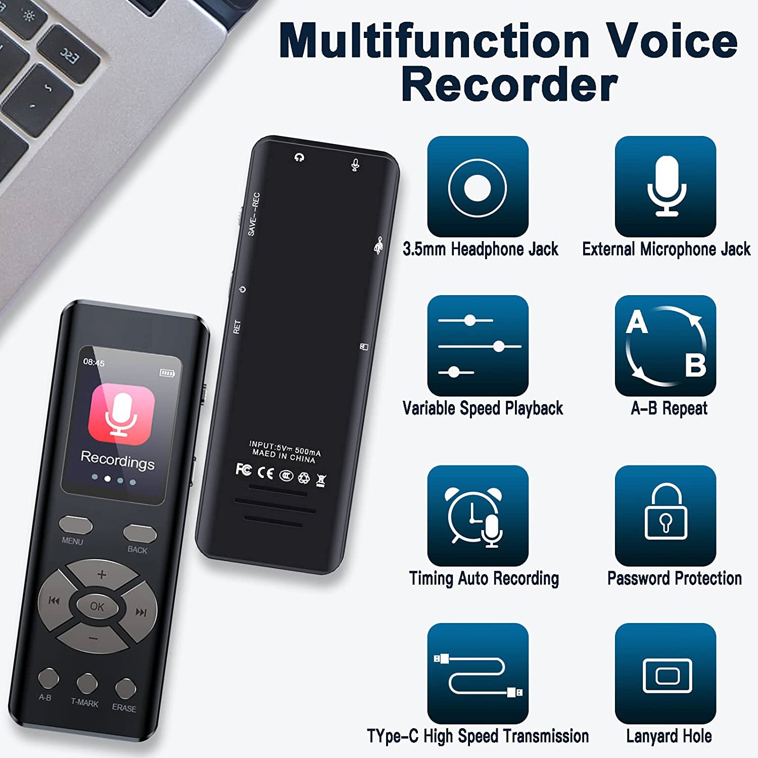✨ROGTZ - Máy thu âm Kỹ thuật số V3/A903 Pin gắn trong, Thiết kế hiện đại, Chất liệu hợp kim, Chip xử lý tiên tiến, Âm thanh trong trẻo, Loại bỏ tạp âm, Dung lượng pin cao, Tính năng thông minh, Hỗ trợ thẻ nhớ, MP3, Hẹn giờ tự động, Hàng Chính Hãng