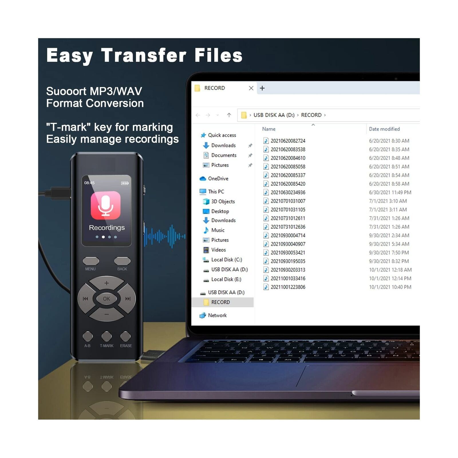 • Đọc thẻ nhớ, lưu trữ đĩa flash USB, MP3: Cho phép bạn lưu trữ và quản lý file ghi âm một cách tiện lợi.