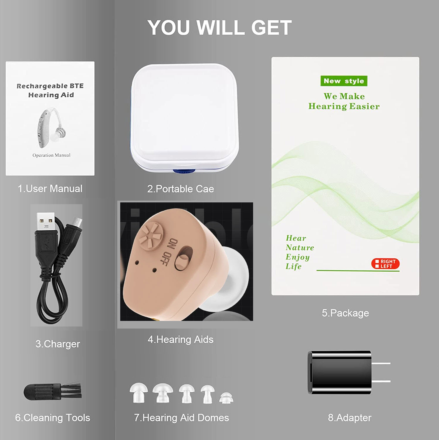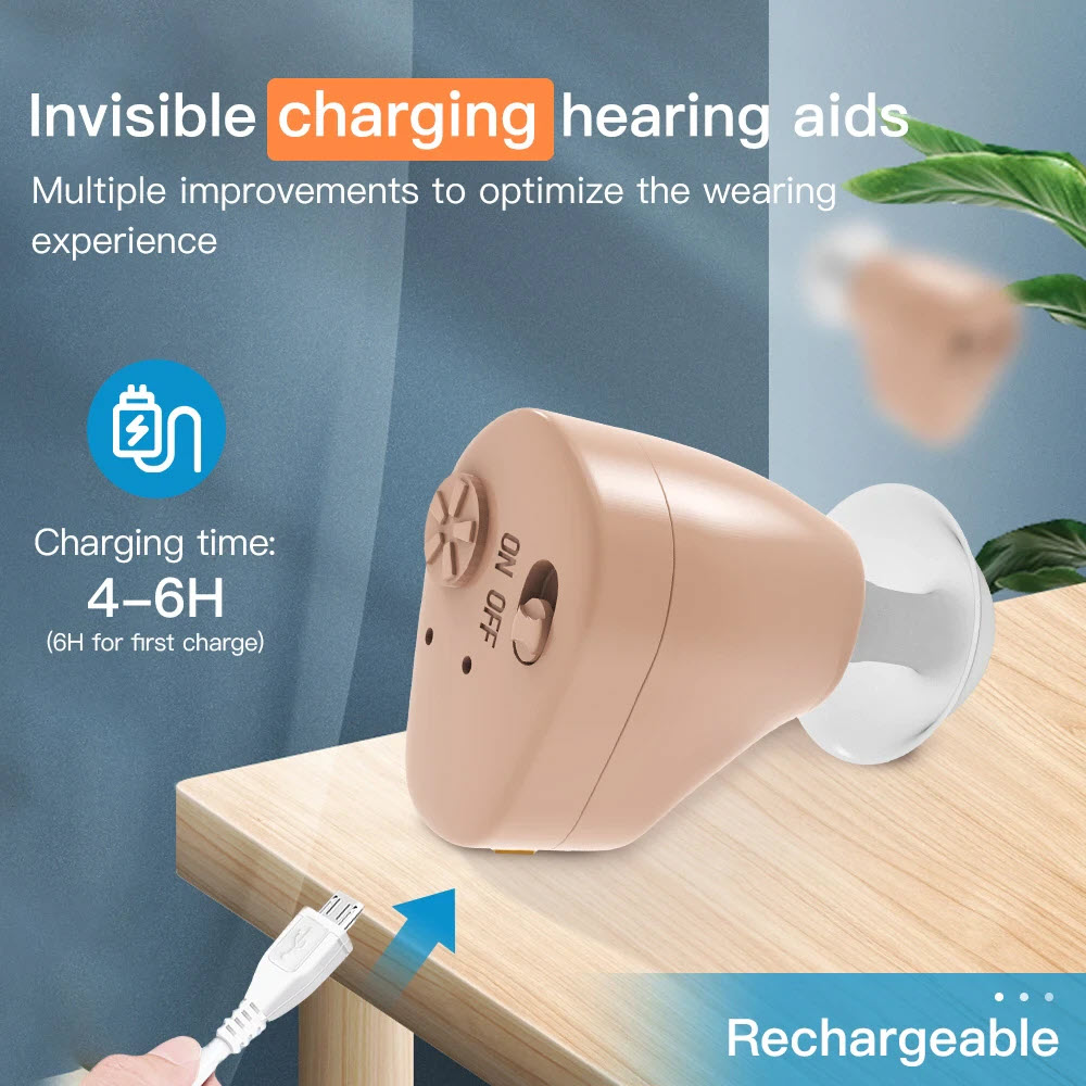 ✨ROGTZ - Máy trợ thính không dây K102 Nhỏ gọn Ôm sát vành tai Thoải mái Dễ sử dụng Lọc bỏ tiếng ồn Khuếch đại âm thanh Pin Lithium dung lượng cao 24h Phù hợp nhiều đối tượng Người già Trẻ em Suy giảm thính lực Văn phòng Gia đình Công cộng-Hàng Chính Hãng