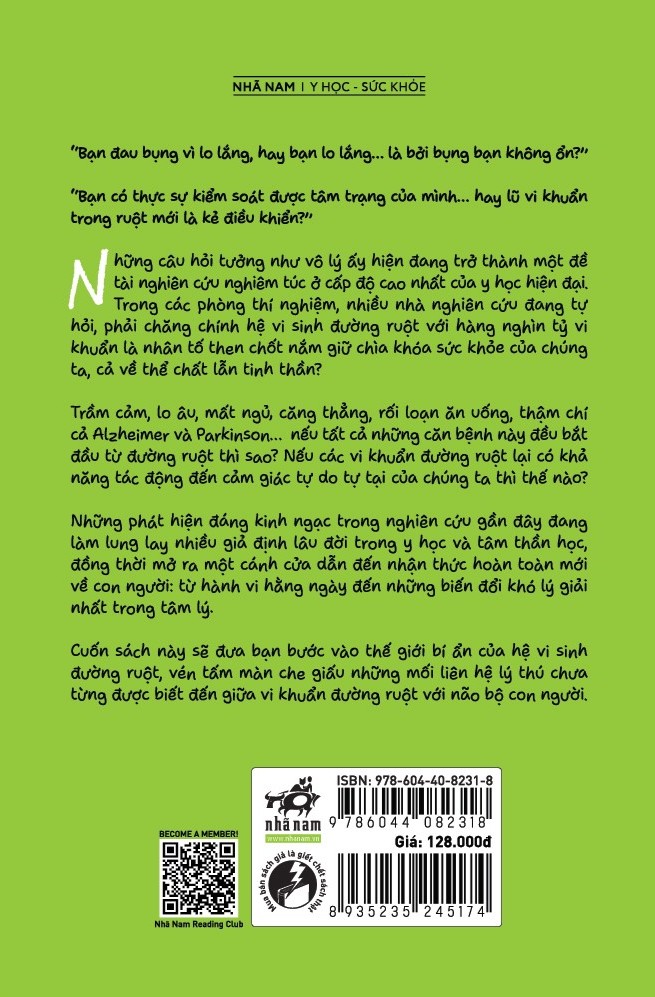 “Bạn đau bụng vì lo lắng, hay bạn lo lắng… là bởi bụng bạn không ổn?” “Bạn có thực sự kiểm soát được tâm trạng của mình… hay lũ vi khuẩn trong ruột mới là kẻ điều khiển?” Những câu hỏi tưởng như vô lý ấy hiện đang trở thành một đề tài nghiên cứu nghiêm túc ở cấp độ cao nhất của y học hiện đại. Trong các phòng thí nghiệm, nhiều nhà nghiên cứu đang tự hỏi, phải chăng chính hệ vi sinh đường ruột với hàng nghìn tỷ vi khuẩn là nhân tố then chốt nắm giữ chìa khóa sức khỏe của chúng ta, cả về thể chất lẫn tinh thần? Trầm cảm, lo âu, mất ngủ, căng thẳng, rối loại ăn uống, thậm chí cả Alzheimer và Parkinson… nếu tất cả những căn bệnh này đều bắt đầu từ đường ruột thì sao? Nếu các vi khuẩn đường ruột lại có khả năng tác động đến cảm giác tự do tự tại của chúng ta thì thế nào? Những phát hiện đáng kinh ngạc trong nghiên cứu gần đây đang làm lung lay nhiều giả định lâu đời trong y học và tâm thần học, đồng thời mở ra một cánh cửa dẫn đến nhận thức hoàn toàn mới về con người từ hành vi hằng ngày đến những biến đổi khó lý giải nhất trong tâm lý. Cuốn sách này sẽ đưa bạn bước vào thế giới bí ẩn của hệ vi sinh đường ruột, vén tấm màn che giấu những mối liên hệ lý thú chưa từng được biết đến giữa vi khuẩn đường ruột với não bộ con người .