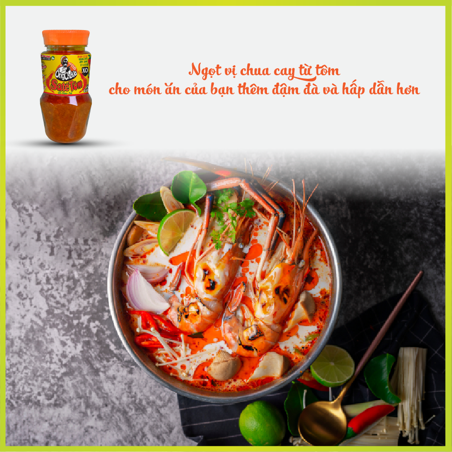 - Thành phần: Tôm (với tôm tươi 33%), ớt (30%), dầu nành tinh luyện, hành tây, hành tím, đinh hương, ….