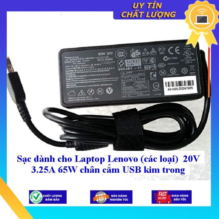 Sạc dành cho Laptop Lenovo (các loại) 20V 3.25A 65W chân cắm USB kim trong - Hàng Nhập khẩu