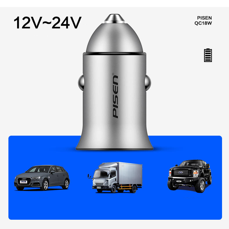 Sạc PISEN Quick Dual USB Car 18W (2xQC 18W)