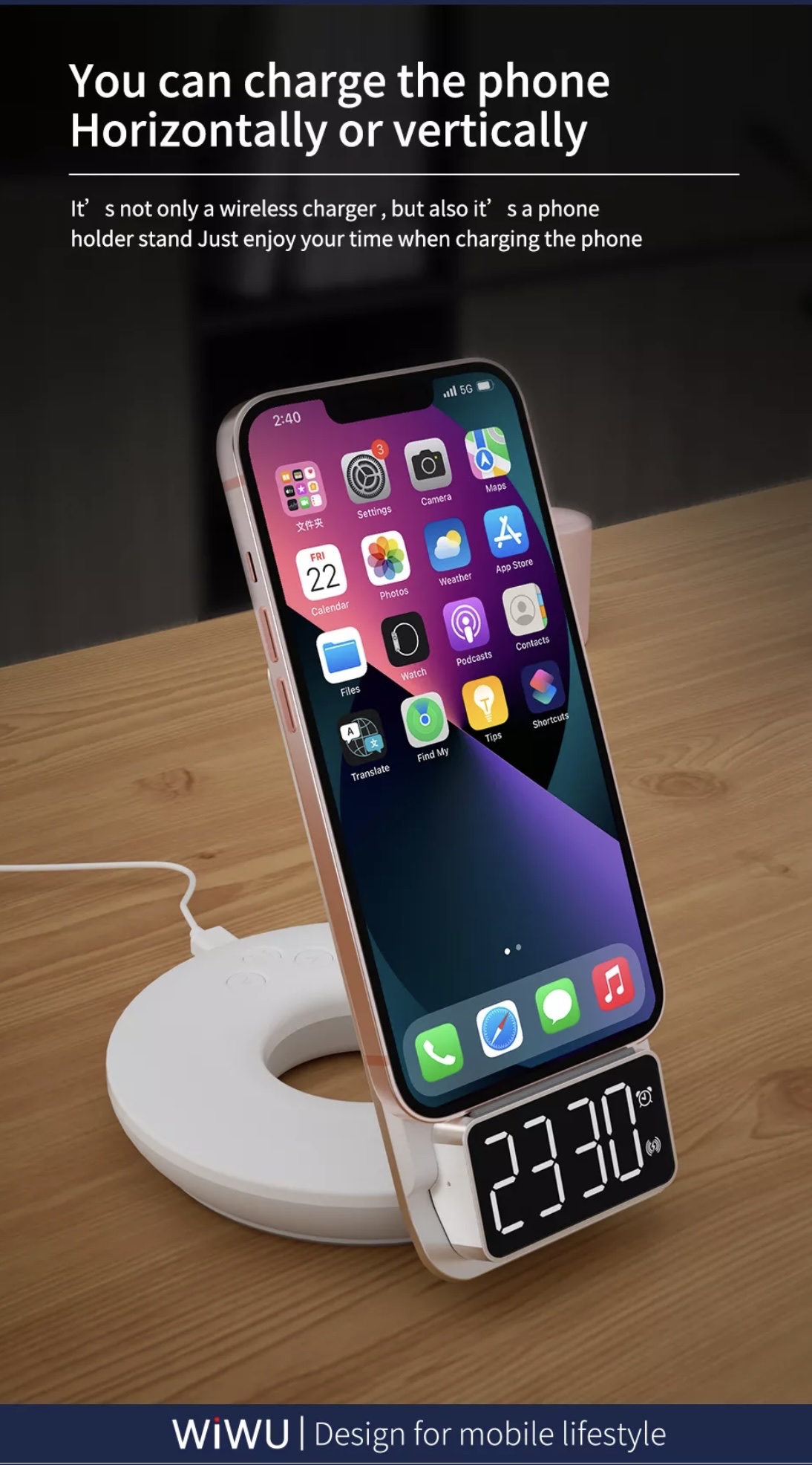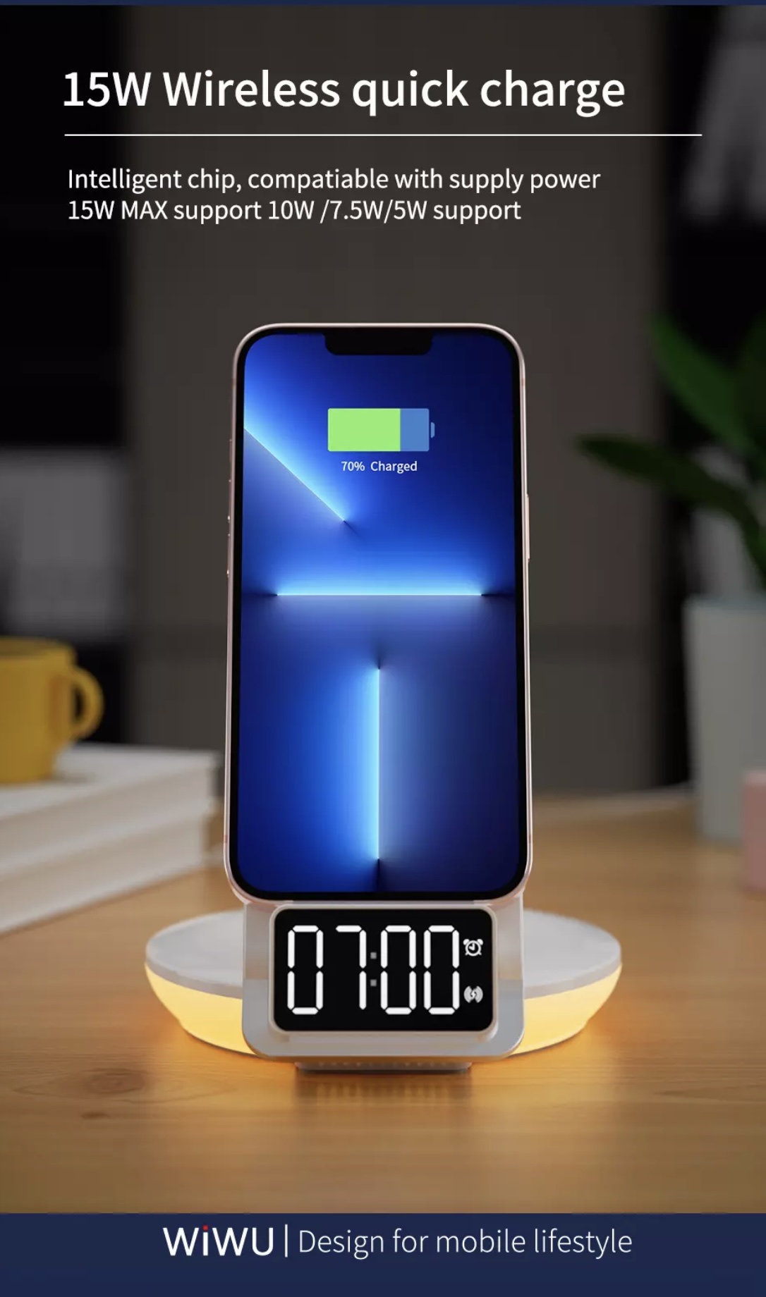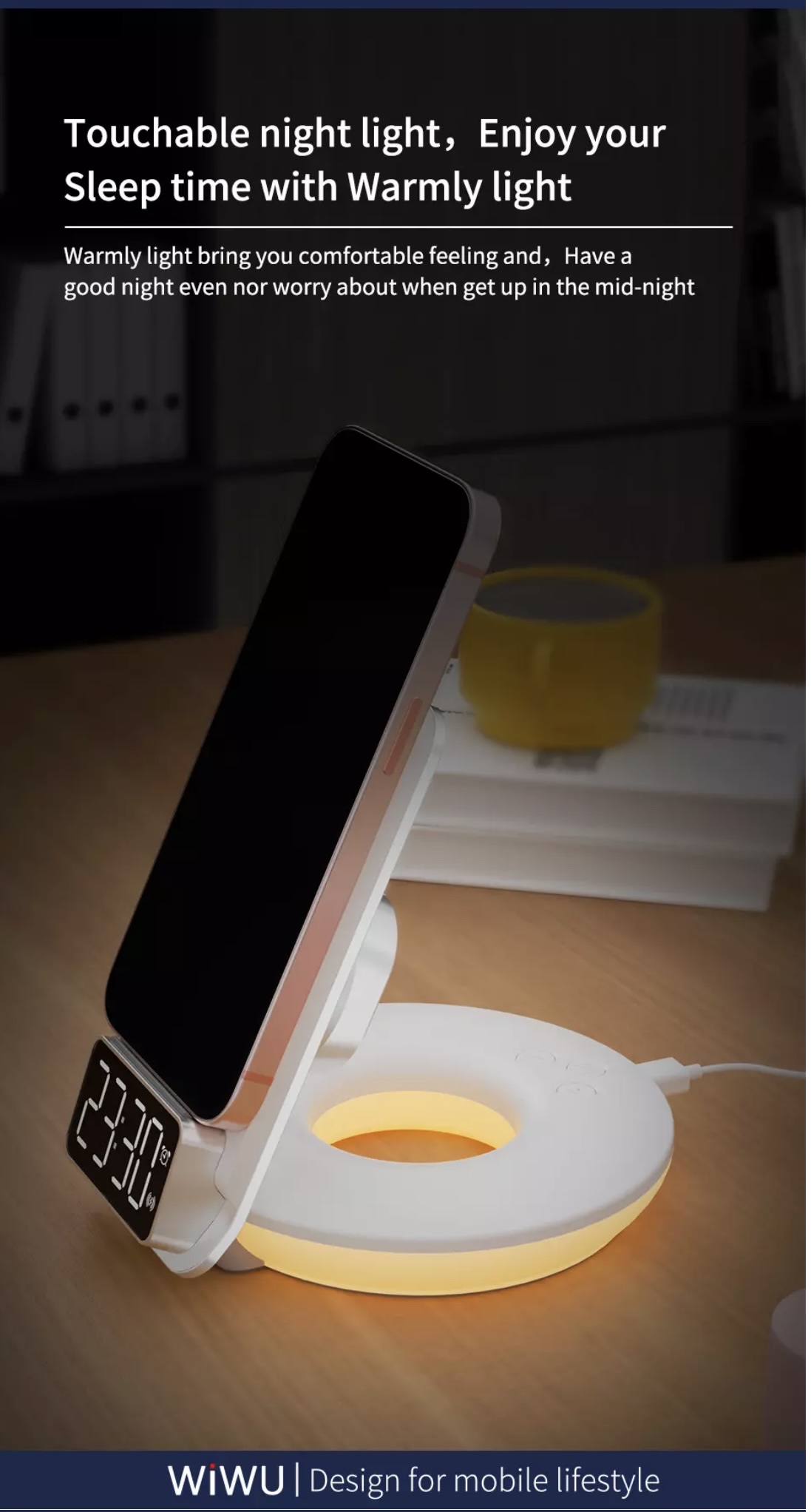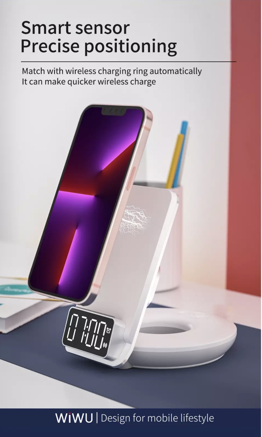 ✨Sạc Wiwu Automatic Positioning 4in1 M11 Dành Cho Điện Thoại Hỗ Trợ Sạc Nhanh Không Dây, Có Đồng Hồ Báo Thức - Hàng Chính Hãng