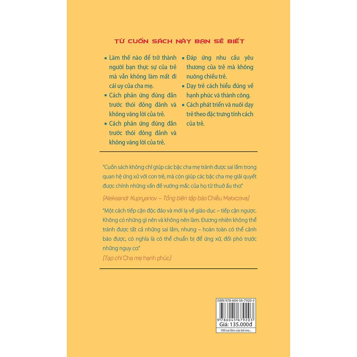 100 sai lầm có thể dễ dàng tránh được trong nuôi dạy trẻTất cả các ông bố, bà mẹ đều sợ mắc phải những lỗi lầm dẫn đến việc phủ nhận mọi cố gắng nuôi dưỡng và giáo dục trẻ. Tuy nhiên, chúng ta không nên sợ lỗi lầm mà nên học cách để có thể tránh được chúng. Cuốn sách này là một cuốn cẩm nang chi tiết, trong đó chỉ ra những sai lầm của các bậc cha mẹ và cách thức khắc phục những sai lầm đó!