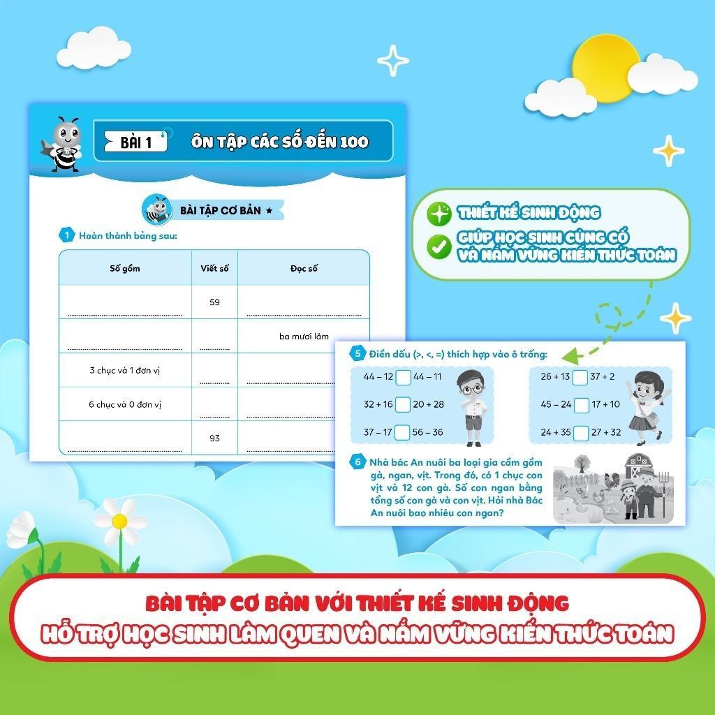 Bài tập cơ bản: Các bài tập trong phần này được thiết kế sinh động, đầy cảm hứng với rất nhiều các hoạt động giúp khơi gợi hứng thú học và làm bài tập của các em, đồng thời giúp các em củng cố và nắm chắc các kiến thức đã học.