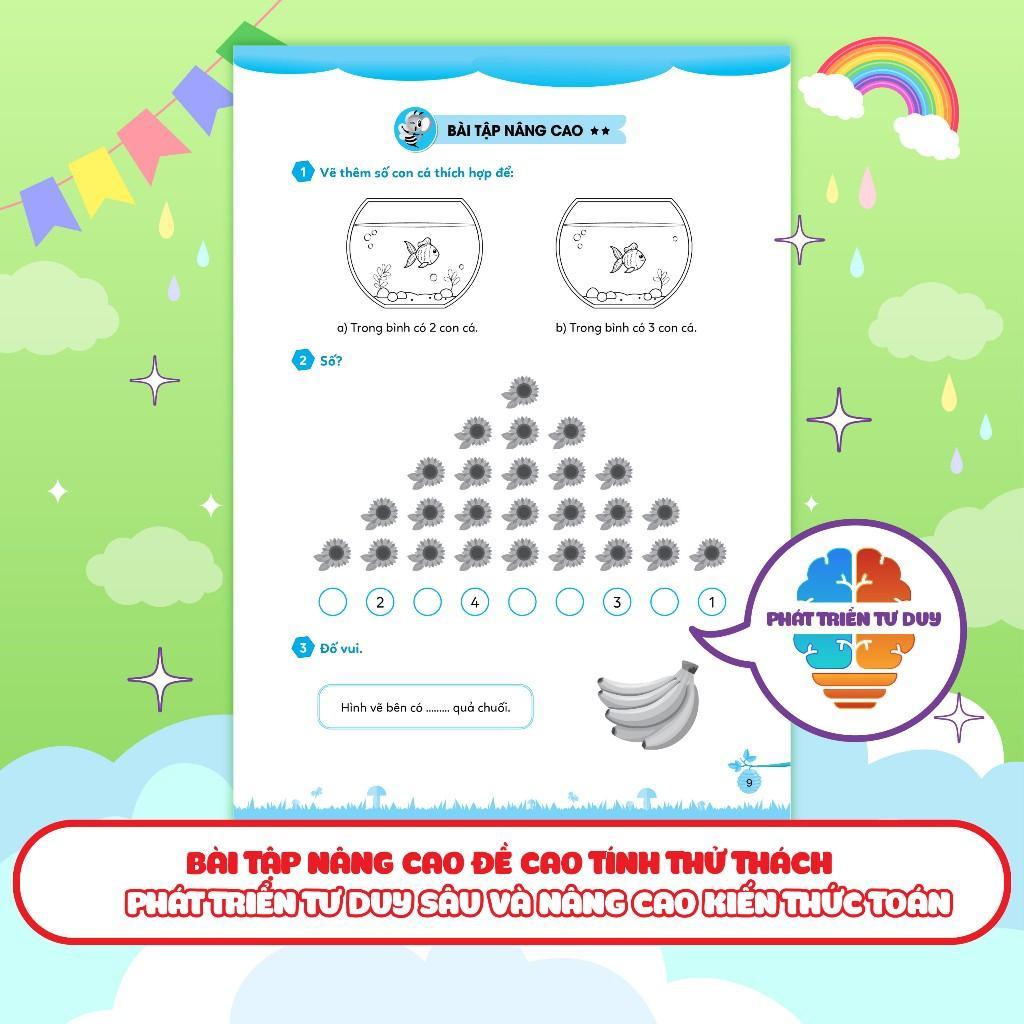 Các bài tập trong phần này được thiết kế sinh động, đầy cảm hứng với rất nhiều các hoạt động nối, tô màu, điền số,... giúp khơi gợi hứng thú học và làm bài tập của các em, đồng thời giúp các em củng cố và nắm chắc các kiến thức đã học.