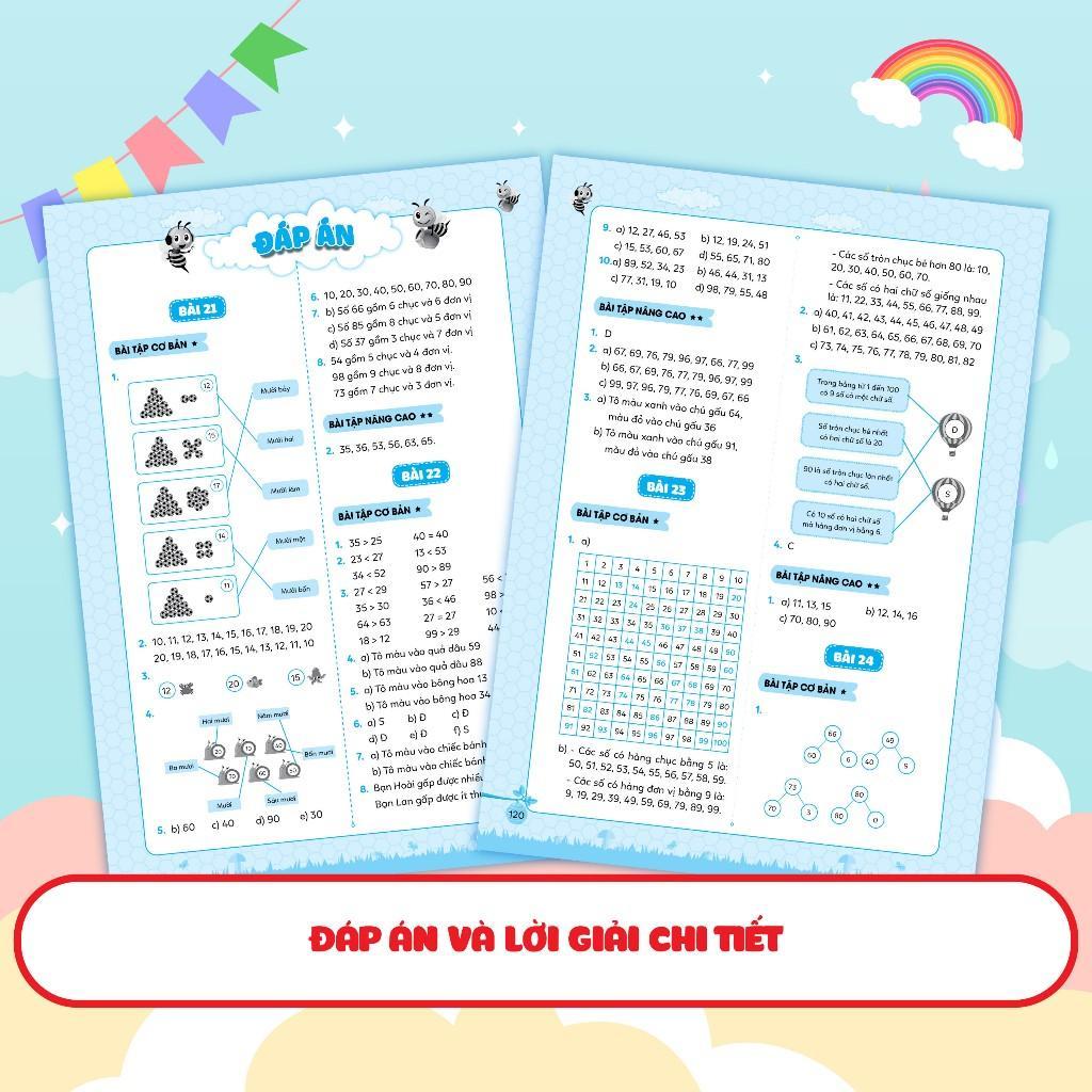 Phần đáp án chi tiết ở cuối sách giúp phụ huynh và các con có thể tự đối chiếu và đánh giá sau khi hoàn thành bài tập, từ đó có phương pháp ôn luyện phù hợp cho con.