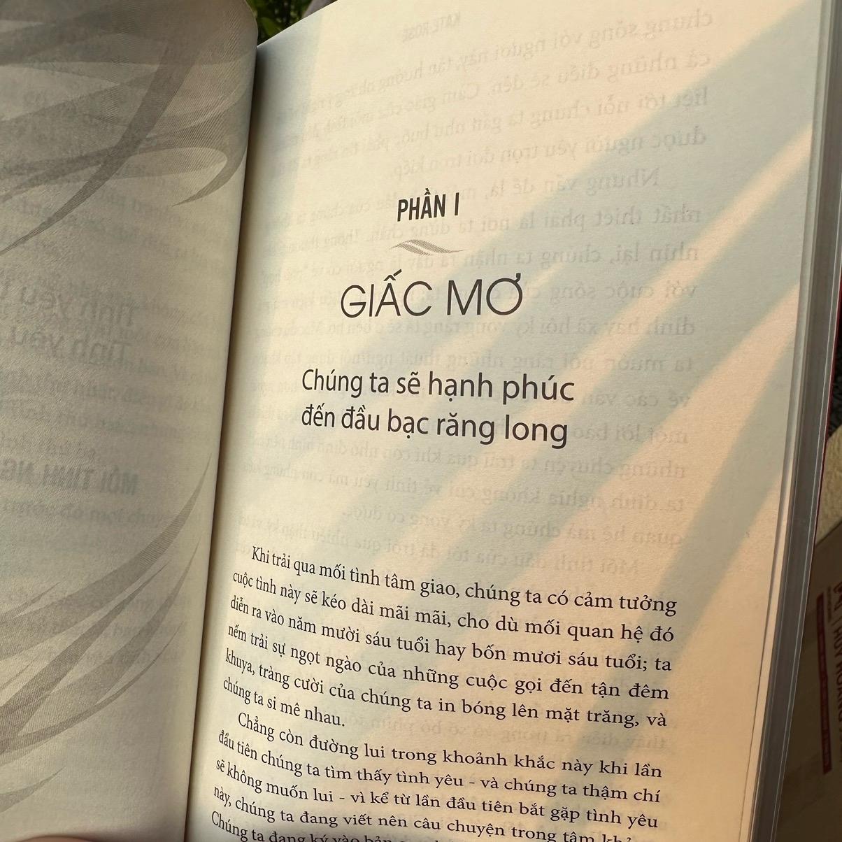 Chúng ta yêu. Rồi yêu thêm lần nữa. Chúng ta hiến dâng những phần đẹp đẽ nhất của bản thân cho ước vọng về điều gì đó hơn thế, và trên đường đời ta hiểu rằng không có thứ tình yêu cổ tích. Chúng ta sẽ không bao giờ yêu người khác giống như cách ta từng yêu người bạn tâm giao tử tế, và sẽ không vbao giờ yêu trong những vòng luẩn quẩn như cách ta từng yêu người tình duyên nghiệp. Nhưng chúng ta cuối cùng sẽ tìm thấy một nửa đích thực. Một tình yêu sẽ thay đổi chính ta và cách ta yêu mãi mãi.