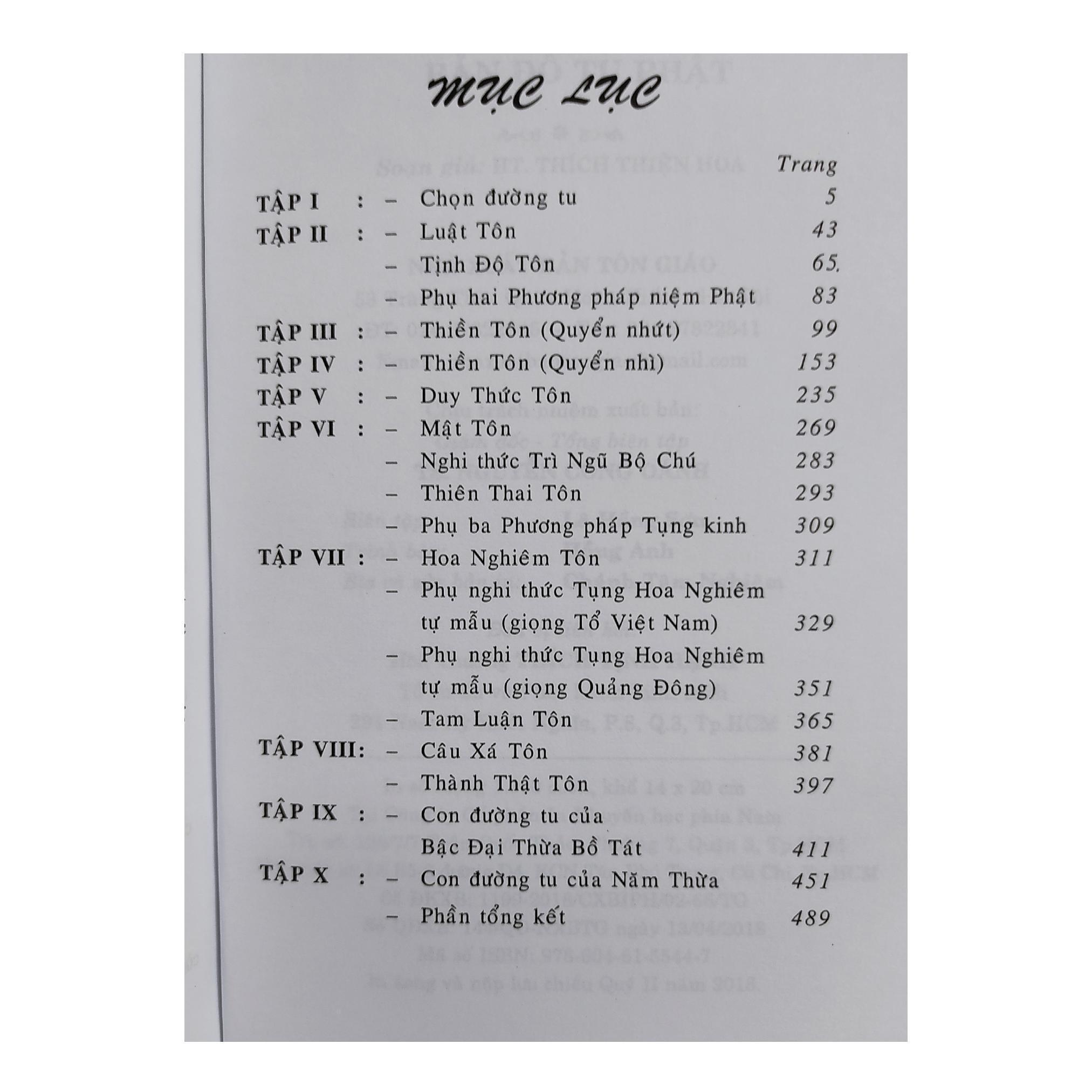 Tác giả: Hòa thượng Thích Thiện Hoa Hình thức: Bìa mềm Khổ sách: 14x20 cm Số trang: 496 trang Cuốn sách "" của soạn giả Thích Thiện Hoa cống hiến cho quý vị nào còn bỡ ngỡ trên bước đường tu hành, một “bản đồ” chỉ đường tu về cõi Phật. từ đó quý vị sẽ có một ý niệm rõ ràng về ý nghĩa của sự tu hành, một quan niệm tổng quát, chính xác về các lối tu, và sẽ lựa một đường lối tu hành thích hợp với hoàn cảnh, khả năng, hoài bão của mình. Từ lâu không biết bao nhiêu người, ở ngoài đời cũng như trong đạo, rất bỡ ngỡ về vấn đề tu hành. Như một kẻ bộ hành ngơ ngác, lạc lõng giữa ngả ba đường, họ băn khoăn tự hỏi:Tu làm sao đây ? Tu phương pháp gì ? Và phải hạ thủ công phu làm sao mới đúng ?Họ có cảm tưởng như lạc vào rừng rậm, tìm không được lối ra, mặc dù trong số ấy có nhiều người đã quy y lâu ngày hay đã ở chùa nhiều năm. Lại có người lại đơn giản hóa sự tu hành : họ chỉ thực hành qua loa một vài việc cho có lệ, và cho như thế là tu rồi. Có người chấp nhặt ở một phương pháp tu hành này, rồi bài xích tất cả phương pháp khác mà họ cho là quấy. Thậm chí có người hiểu nghĩa chữ “tu” một cách mơ hồ hay sai lạc, rồi dựa vào đó mà thực hành một cách mù quáng, sai đường, và đôi khi lại còn trở lại công kích những kẻ đi đường khác !Đứng trước tình trạng buồn thảm ấy, ai lại chẳng đau lòng ! Vì thế chúng tôi bạo dạn soạn loạt bài này, để cống hiến cho quý vị nào còn bỡ ngỡ trên bước đường tu hành, một “bản đồ” chỉ đường tu về cõi Phật. Trong loạt bài này chúng tôi in thành từng tập sách nhỏ, chúng tôi sẽ tuần tự đề cập đến những điểm quan trọng sau đây :1) Thanh toán những quan niệm chật hẹp sai lầm, những sự bài xích lẫn nhau của các tôn phái về chữ “tu”.2) Giải thích và phân tách rành rõ về nghĩa chữ “tu”.3) Nhấn mạnh vào sự cần yếu của sự tu hành, đối với hết thảy mọi người, mọi giai cấp trong xã hội, và chỉ rõ về cách “tu” của quảng đại quần chúng.4) Trình bày về lối tu thông thường, nhưng cần yếu của giới Phật tử, xuất gia và tại gia từ xưa đến nay.5) Trình bày về lối tu chuyên môn riêng biệt của các tôn phái Phật giáo (mười tôn). Các lối tu này nhằm mục đích đi sâu vào đạo, nên các tu sĩ xuất gia rất cần biết rõ.6) Trình bày cách tu rộng lớn của Đại thừa Bồ tát trong mọi ý nghĩ, lời nói, cử chỉ và hành động, v.v…7) Cuối cùng, giải rõ về lối tu của năm thừa, phân biệt so sánh lối tu của Đại thừa và Tiểu thừa để quy về Nhất thừa.