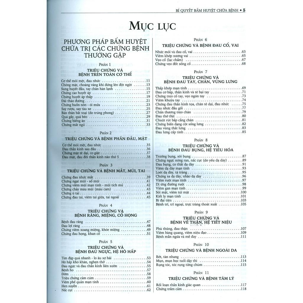 Với sơ đồ thể hiện vị trí chính thức của 200 huyệt đạo trên cơ thể, cuốn sách như một công trình khoa học chuyên sâu, hữu ích và giá trị – một bí huyết thực hành bấm huyệt rất thực tế và sinh động, giúp các chuyên gia châm cứu, bấm huyệt hiểu sâu hơn và nâng cao tay nghề hơn qua kỹ thuật bấm huyệt chữa bệnh hiệu quả được đúc kết và lưu truyền lâu đời. Với người đọc thông thường, sách còn cung cấp cho chúng ta những kiến thức cơ bản và các kỹ thuật xoa bấm đơn giản nhưng hiệu quả, giúp cơ thể nhanh chóng phục hồi và khỏe mạnh.
