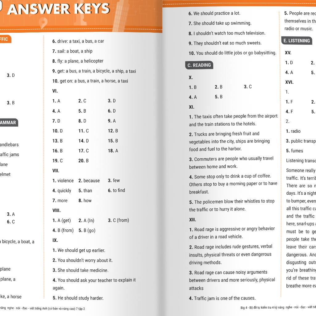 ✨Sách - Big 4 Bộ Đề Tự Kiểm Tra 4 Kỹ Năng Nghe - Nói - Đọc - Viết Tiếng Anh Cơ Bản Và Nâng Cao Lớp 7 - Combo 2 Tập - Megabook