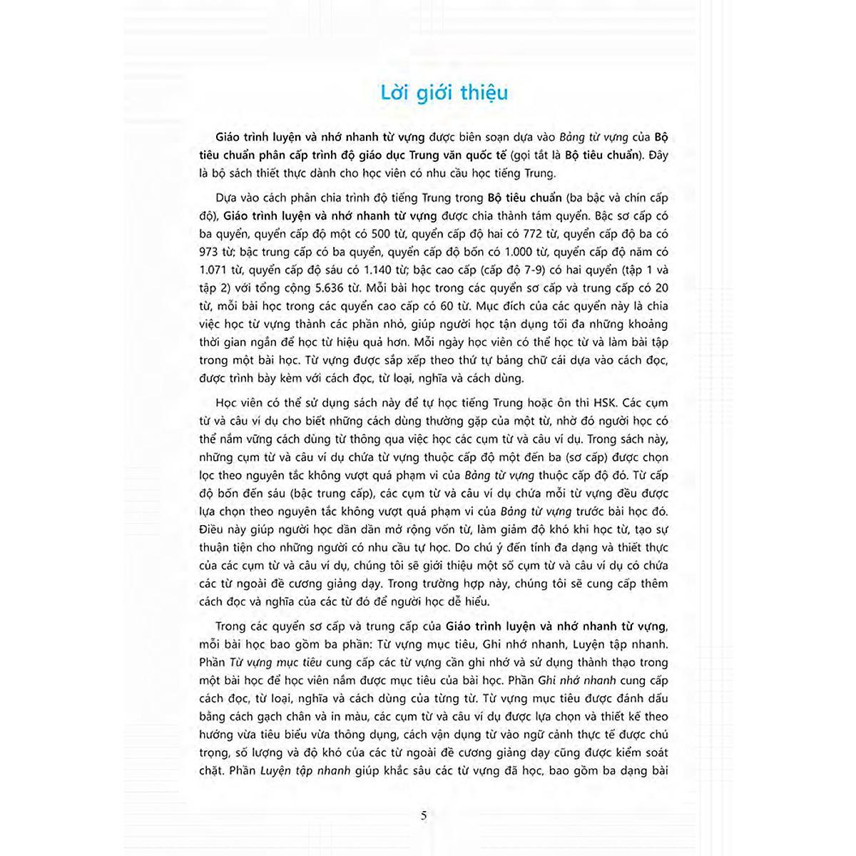 Giáo trình luyện và nhớ nhanh từ vựng giới thiệu toàn bộ từ vựng trong Bảng từ vựng của Bộ tiêu chuẩn phân cấp trình độ giáo dục Trung văn quốc tế.