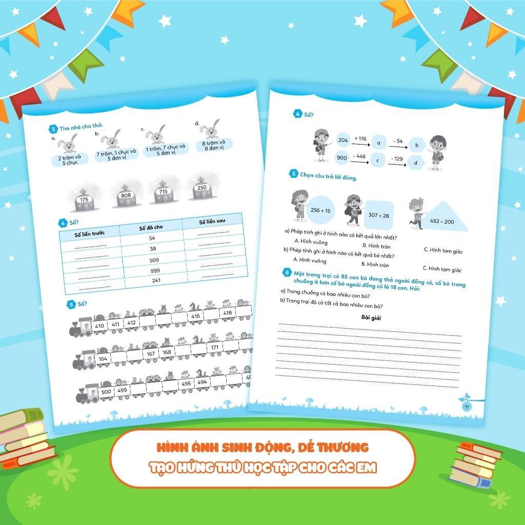 - Đáp án chi tiết, rõ ràng: Phần đáp án chi tiết ở cuối sách giúp phụ huynh và các con có thể tự đối chiếu và đánh giá sau khi hoàn thành bài tập, từ đó có phương pháp ôn luyện phù hợp cho con. Mong rằng cuốn sách Bổ trợ Toán bài tập cơ bản và nâng cao lớp 3 tập 1 sẽ là người bạn đồng hành thân thiết, giúp các em tự tin nắm vững kiến thức của lớp 3