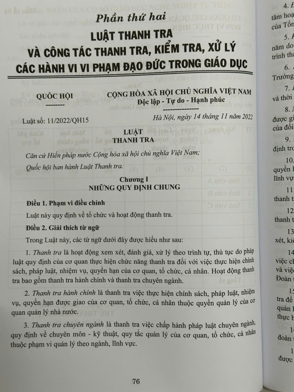 Phần thứ hai. Luật Thanh tra và công tác thanh tra, kiểm tra, xử lý các hành vi vi phạm đạo đức trong giáo dục