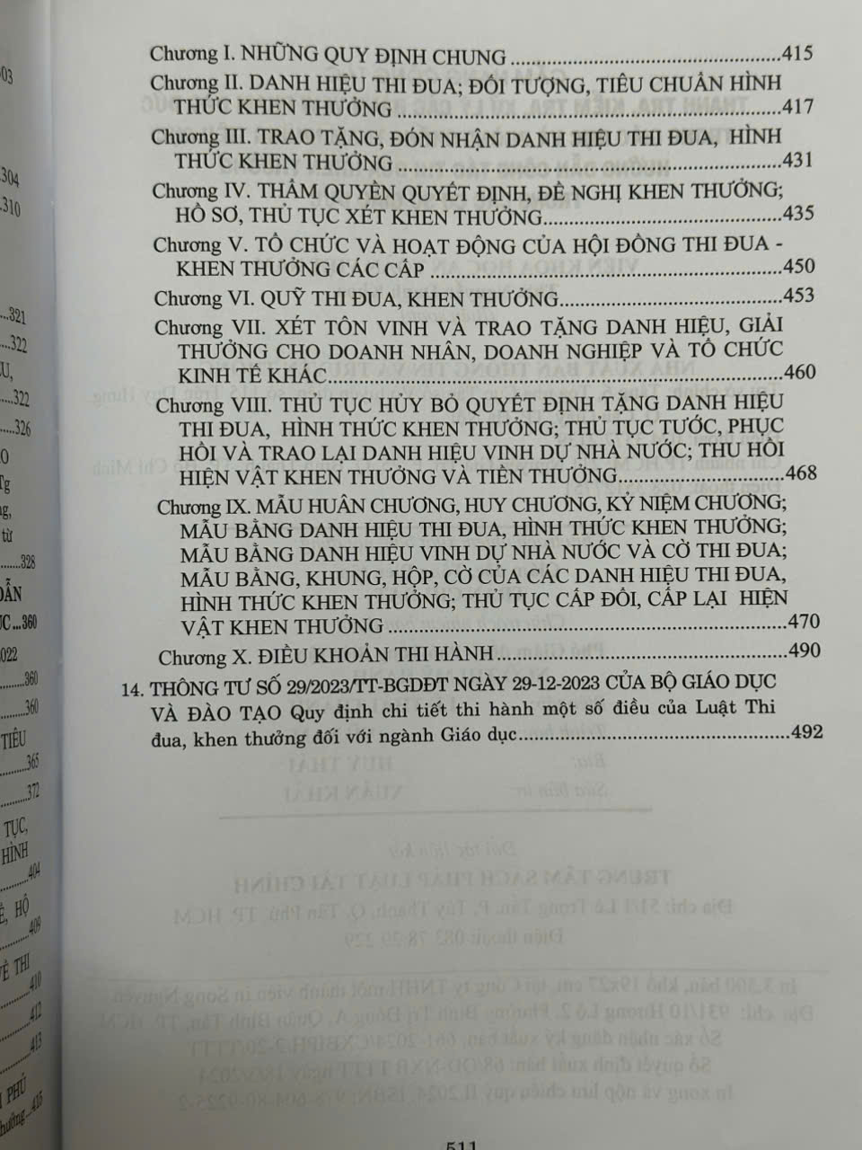 Phần thứ tư. Luật Thi đua, khen thưởng và hướng dẫn công tác thi đua, khen thưởng trong các cơ sở giáo dục