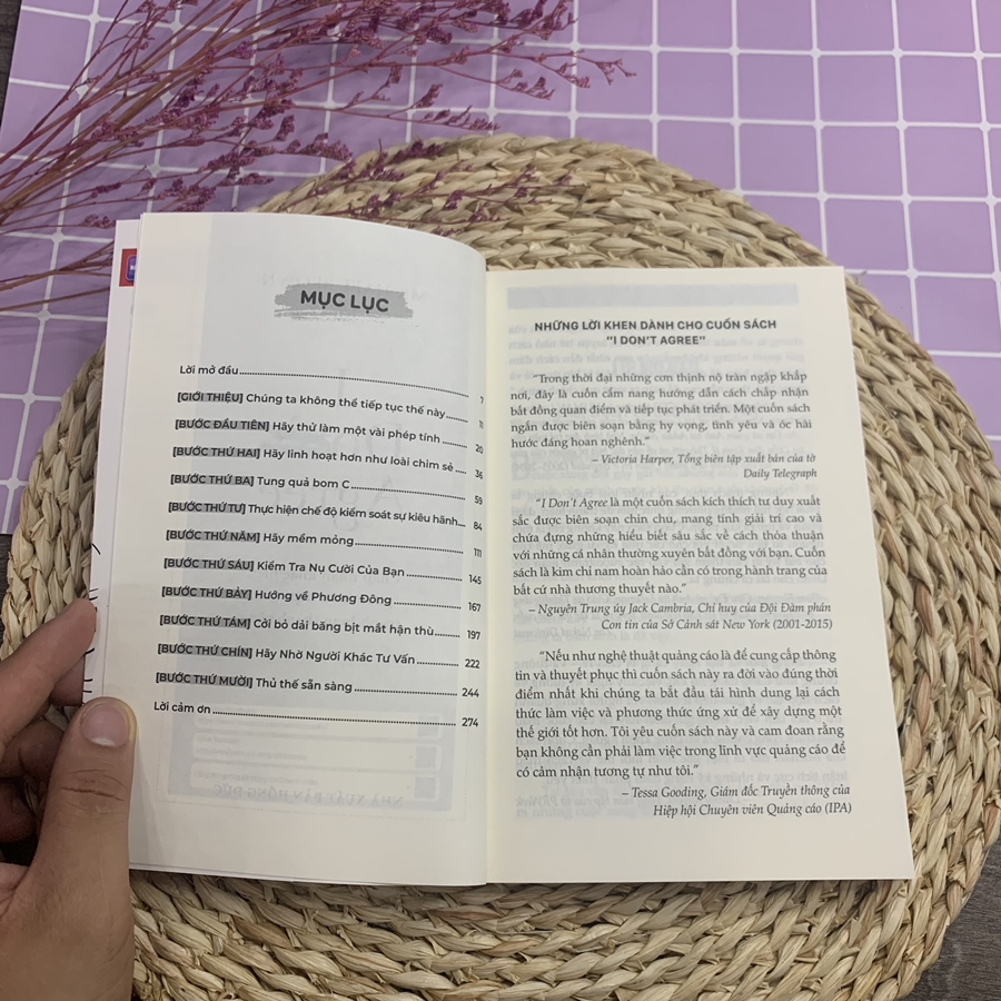 Sẽ thế nào nếu thực sự có một phương thức để người ta khẳng định chắc nịch rằng “Tôi không đồng ý” nhưng cuối cùng vẫn đạt được sự đồng thuận hoàn toàn? Và điều gì sẽ xảy ra nếu hướng tiếp cận xung đột này cũng giúp mọi người xử lý mọi chuyện đâu ra đó, bất chấp tư tưởng đối lập nhau. Và cuốn sách I Don’t Agree: Chấp nhận sự khác biệt, phản biện hiệu quả, tranh luận thành công sẽ cho phép bạn vừa giải quyết vấn đề vừa nhận ra sự khác biệt giữa chúng ta, bất kể tranh cãi về vấn đề gì, bất chấp chủ đề đàm phán ra sao; từ vấn đề bình đẳng đến môi trường, từ việc đề xuất tăng lương đến thăng tiến, từ giới tính đến địa chính trị thông qua 10 bước: