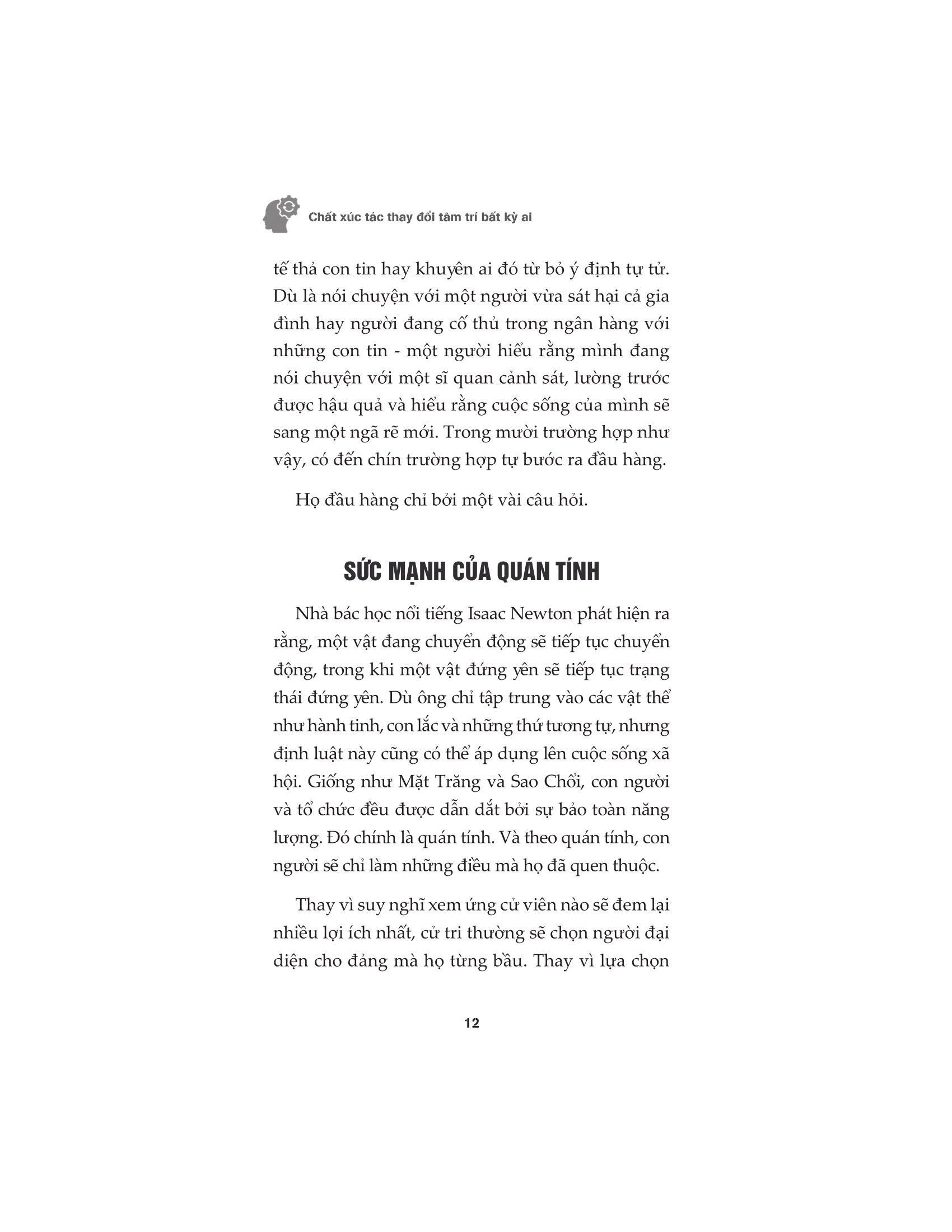 Chất Xúc Tác Thay Đổi Tâm Trí Bất Kỳ Ai Mỗi người đều có thứ họ muốn thay đổi. Người bán hàng muốn thay đổi suy nghĩ của người mua. Nhân viên muốn thay đổi góc nhìn của sếp, lãnh đạo thì muố...